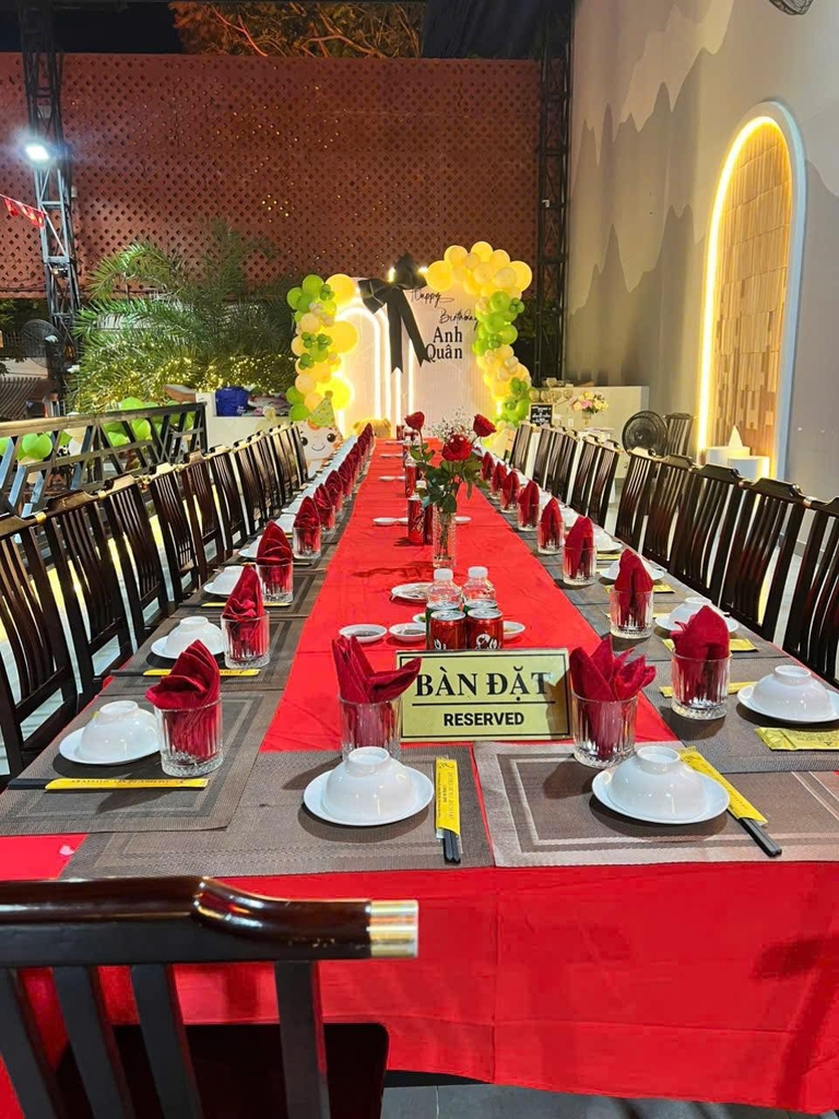 Không gian sân vườn rộng, phù hợp cho tiệc nhóm, tiệc công ty, sinh nhật.