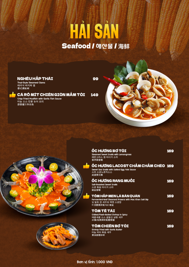 Ốc, hải sản tươi – bò – heo – các món nhậu