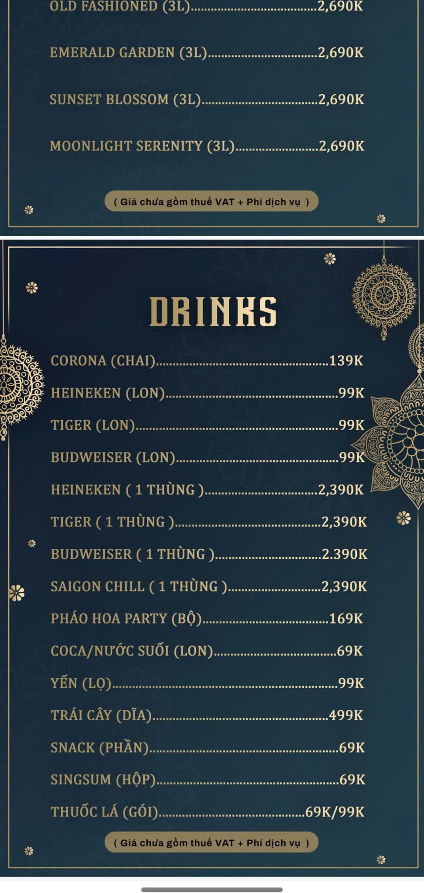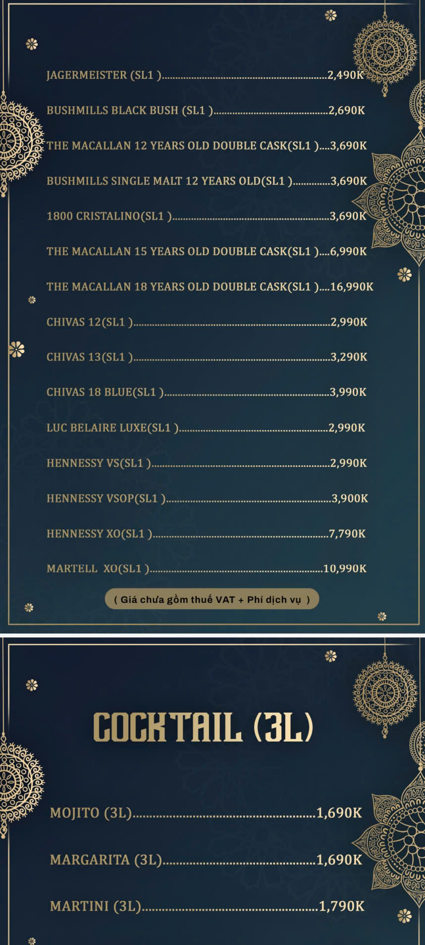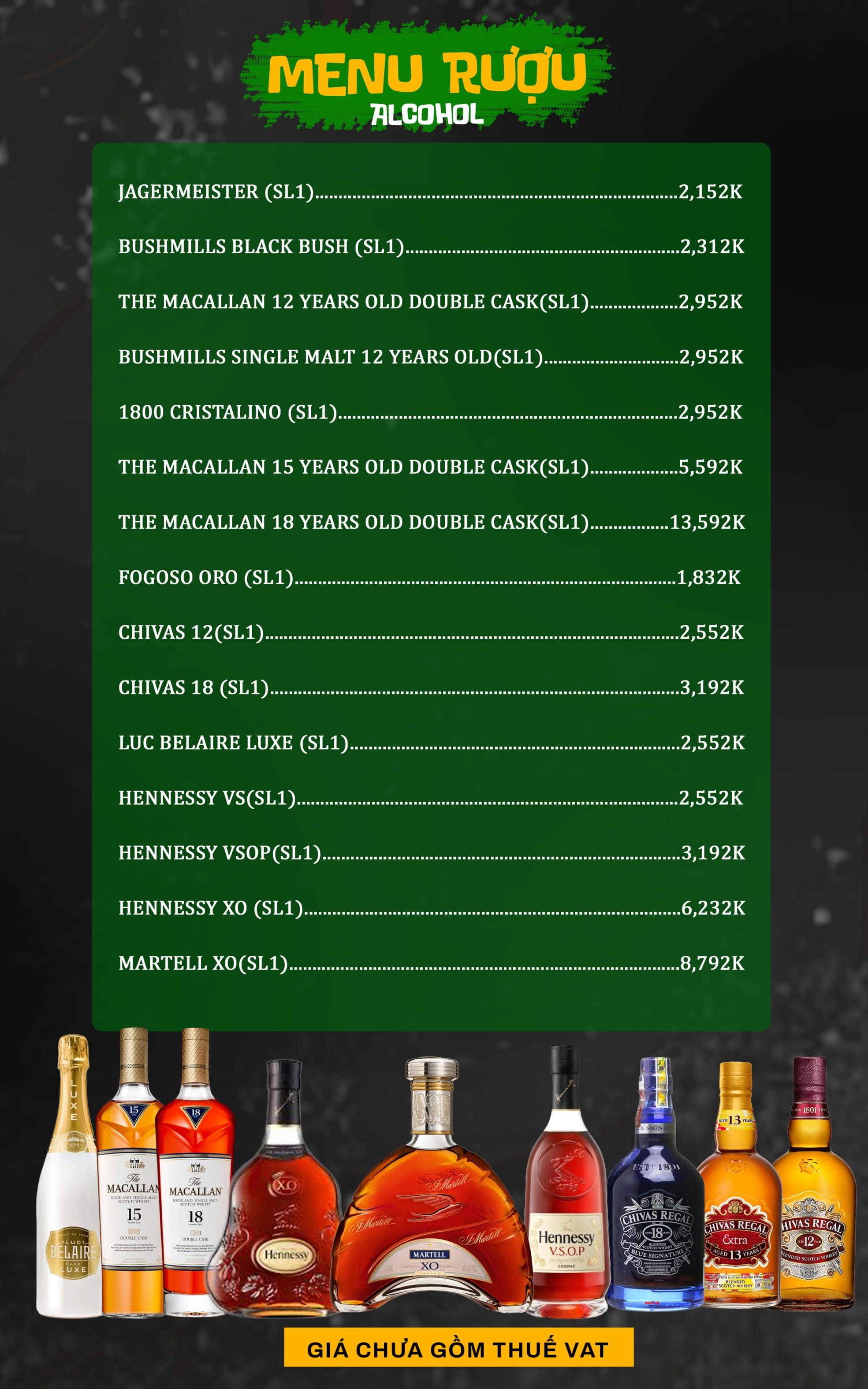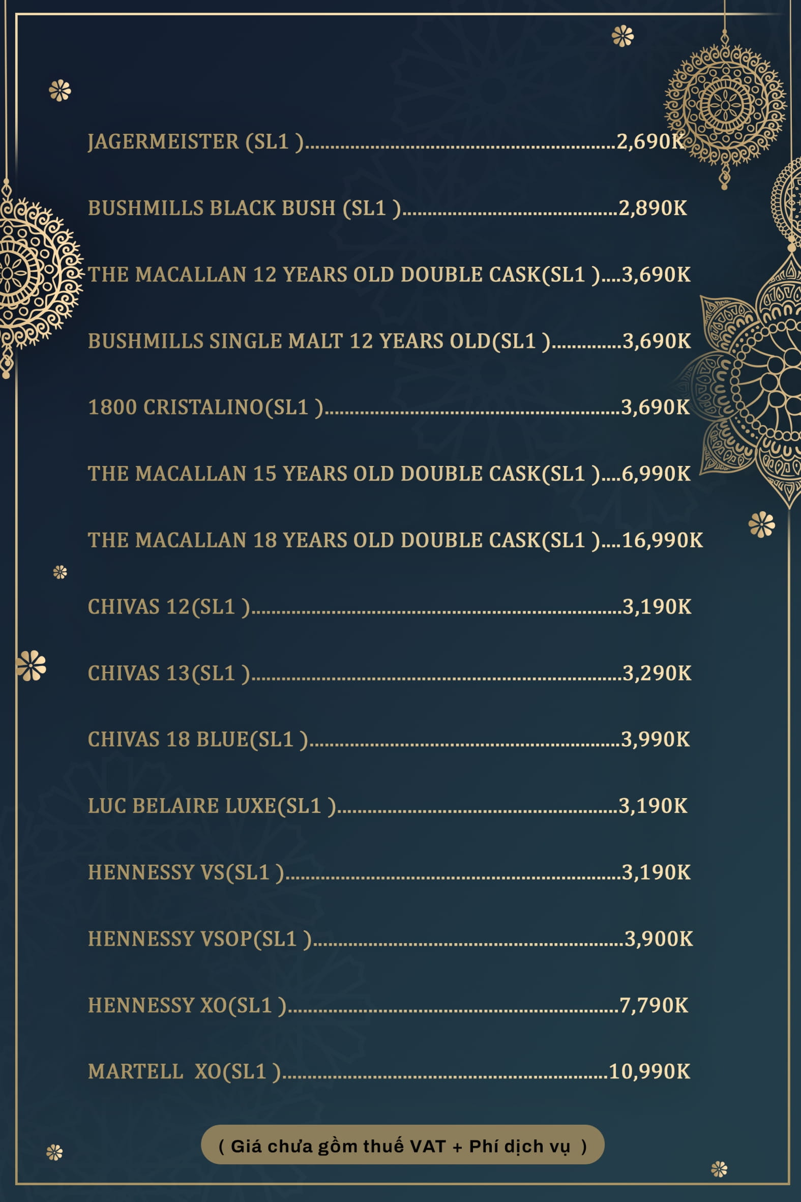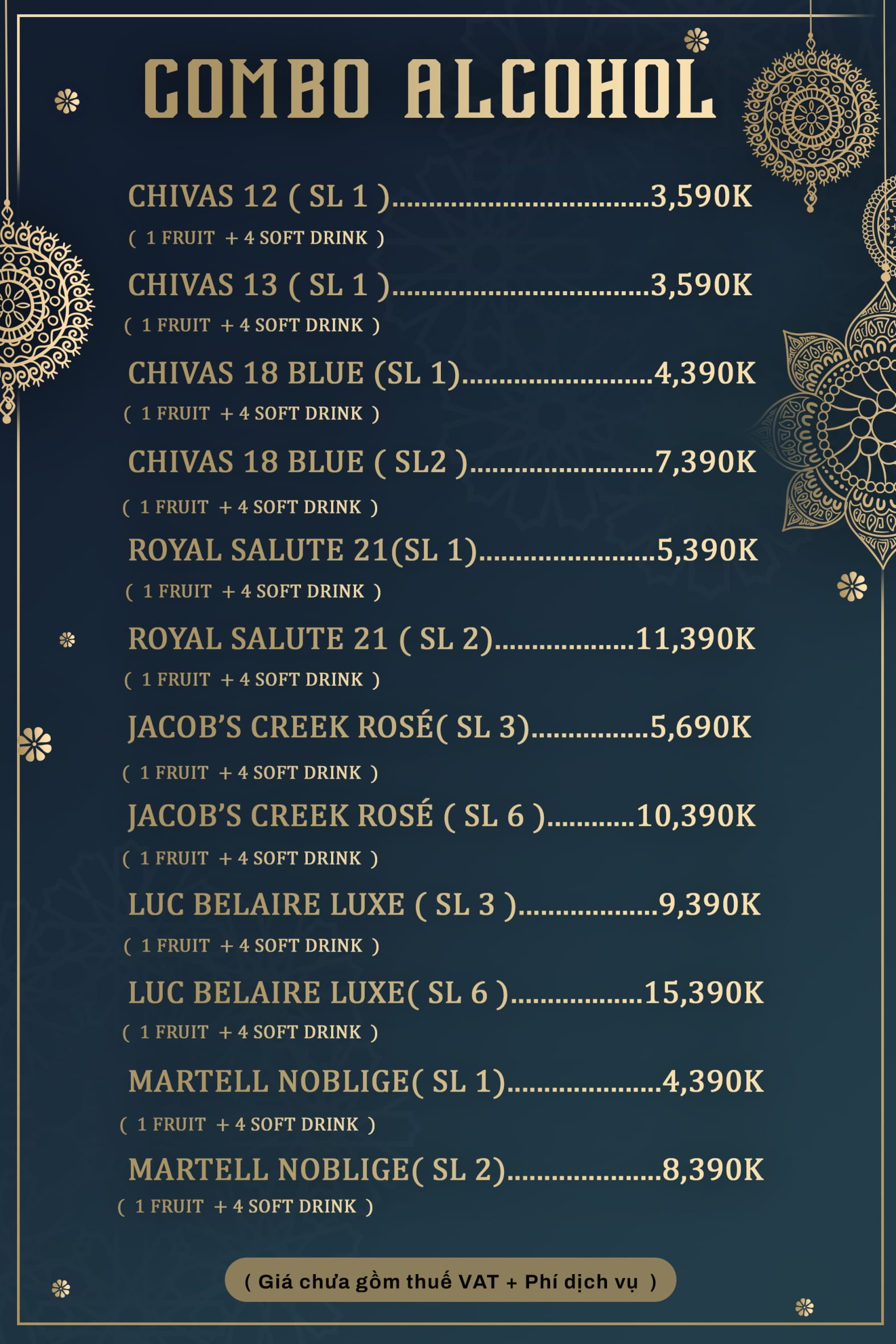 Menu bia, cocktail, mocktail phong phú, được pha chế bởi bartender chuyên nghiệp.