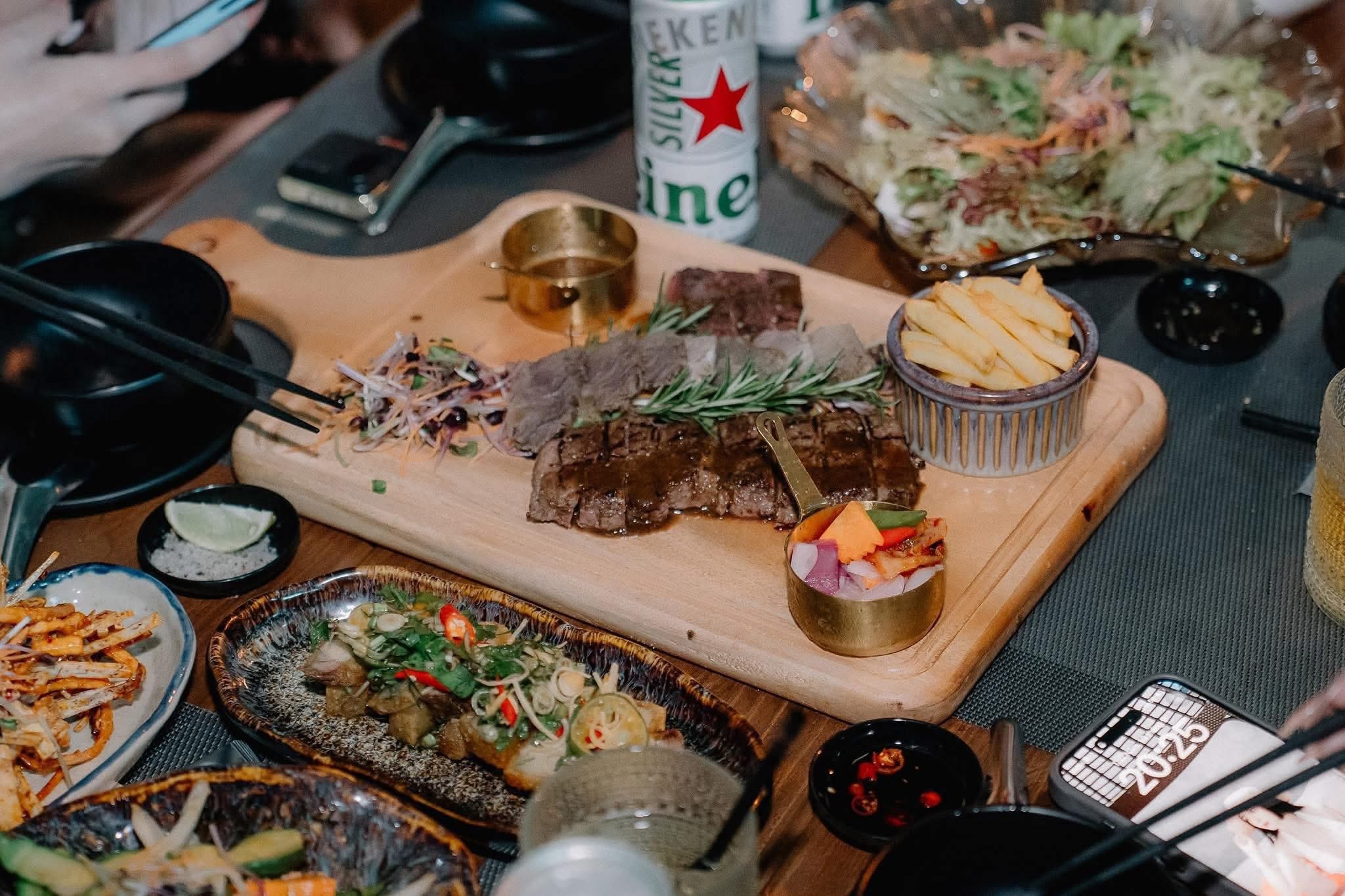 Món nướng & lẩu hấp dẫn: bò Mỹ nướng đá, lẩu Thái hải sản, lẩu bò nhúng dấm.