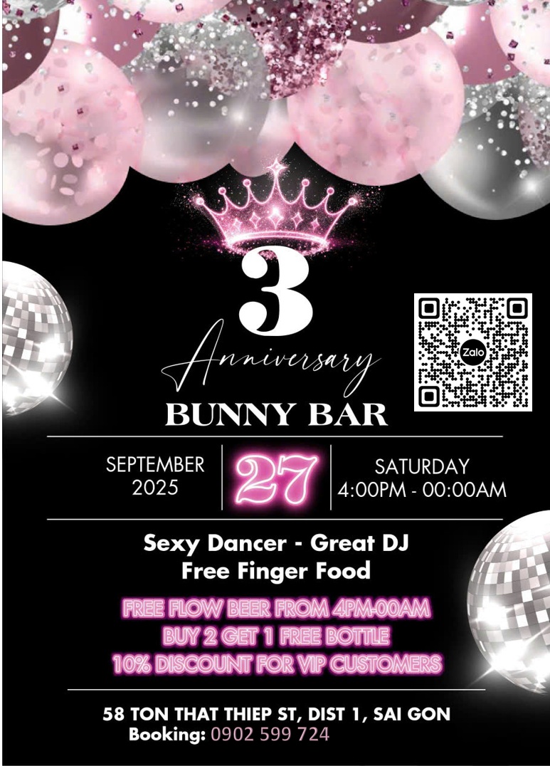 Bunny Bar Saigon is a vibrant entertainment hotspot in the heart of District 1, Ho Chi Minh City, located at 58 Tôn Thất Thiệp, Bến Nghé Ward. With a modern atmosphere and unique service style, the bar attracts a large number of both local and international guests.