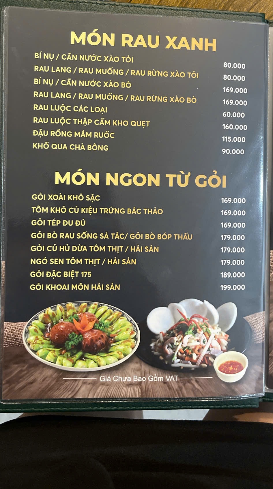 MENU THỰC ĐƠN NHÀ HÀNG 175 THAM KHẢO TẠI: