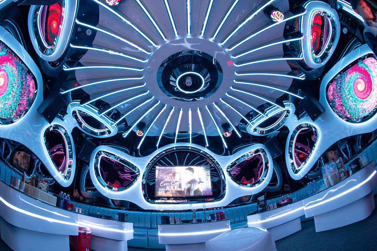Từng chi tiết trong quán – từ ghế sofa cao cấp, đèn LED đổi màu, sân khấu mini DJ – đều được đầu tư chỉn chu để mang lại trải nghiệm hoàn hảo nhất cho khách hàng.