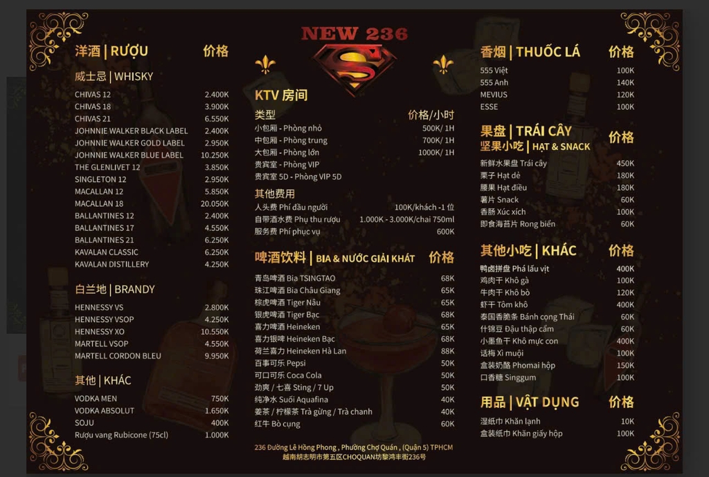 Karaoke 236 KTV 位于胡志明市第五郡繁华的 Lê Hồng Phong 街道,周边汇集了众多娱乐与美食场所,交通便利。这里非常适合朋友聚会、生日派对或公司聚餐。
