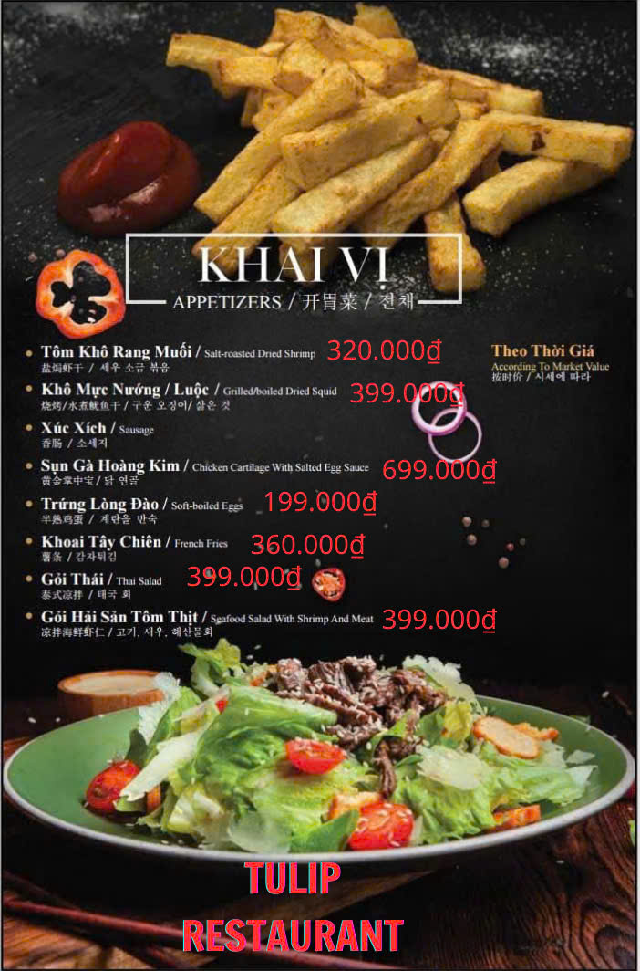 Kết hợp giữa nhà hàng và karaoke cao cấp, Tulip mang đến không gian hiện đại – âm thanh sống động – dịch vụ chuẩn mực, giúp bạn tận hưởng trọn vẹn những khoảnh khắc giải trí đáng nhớ.