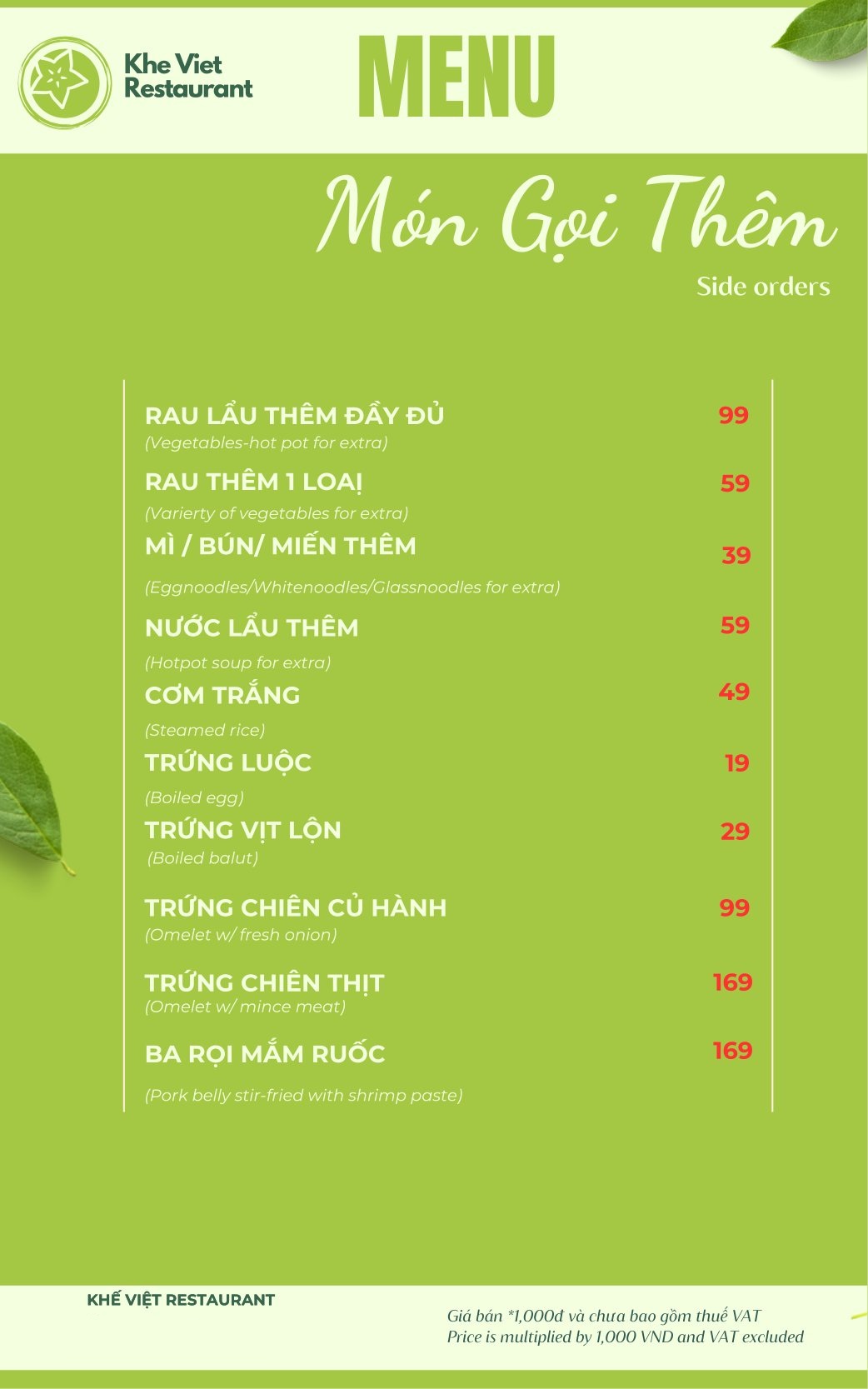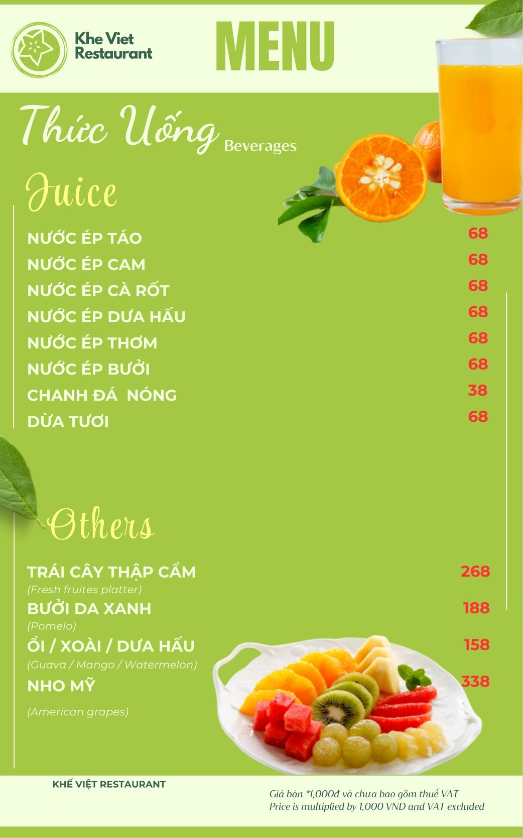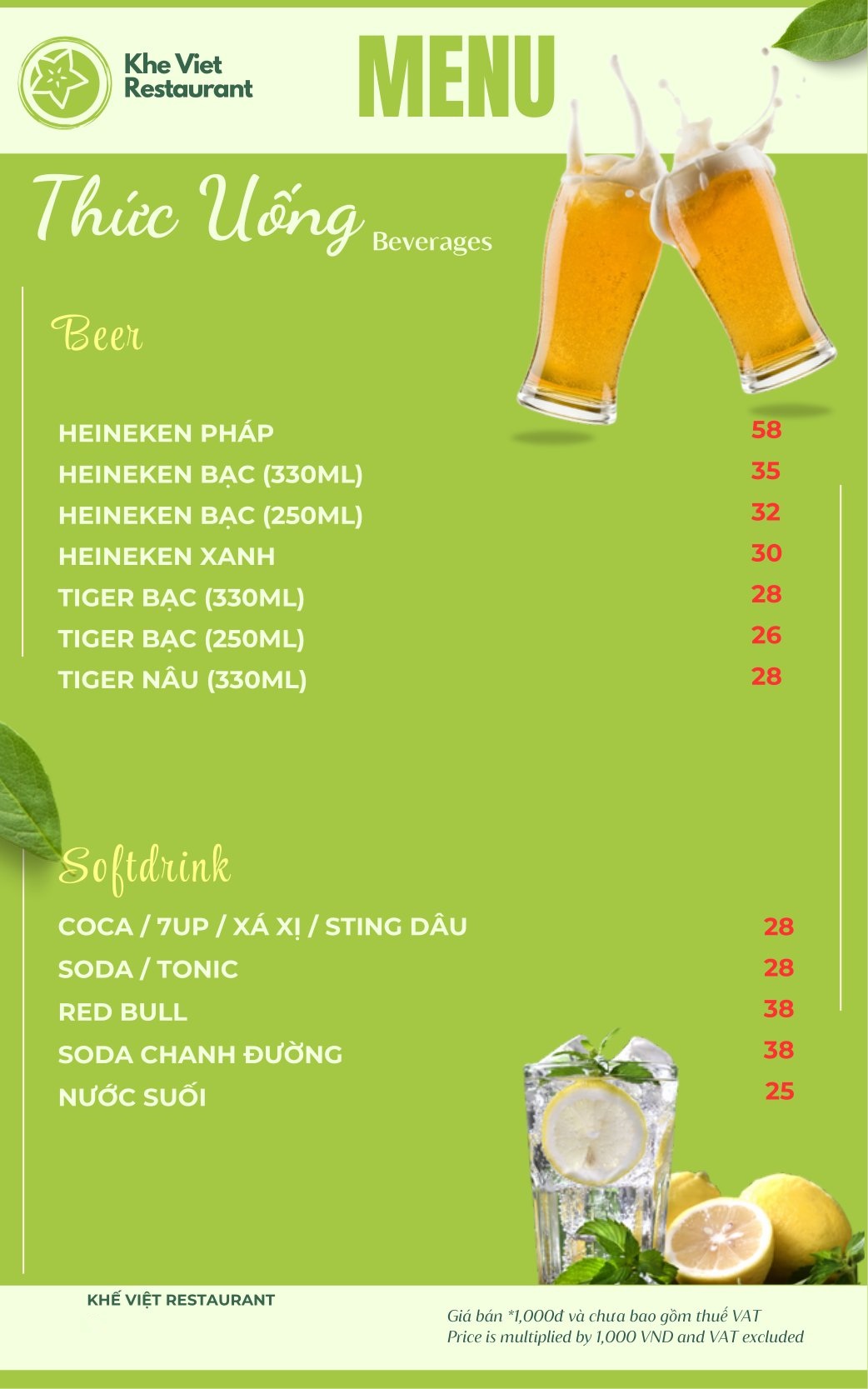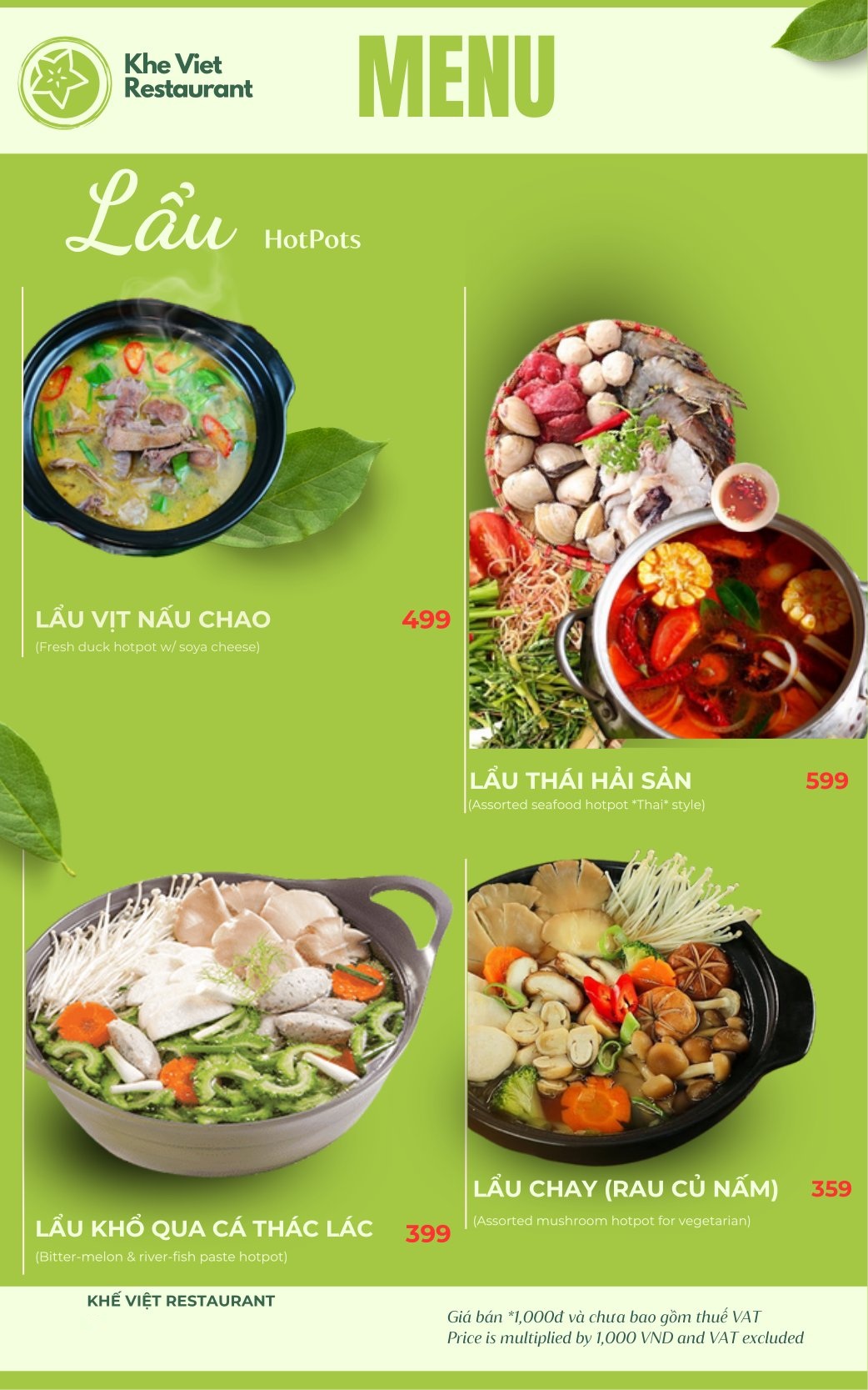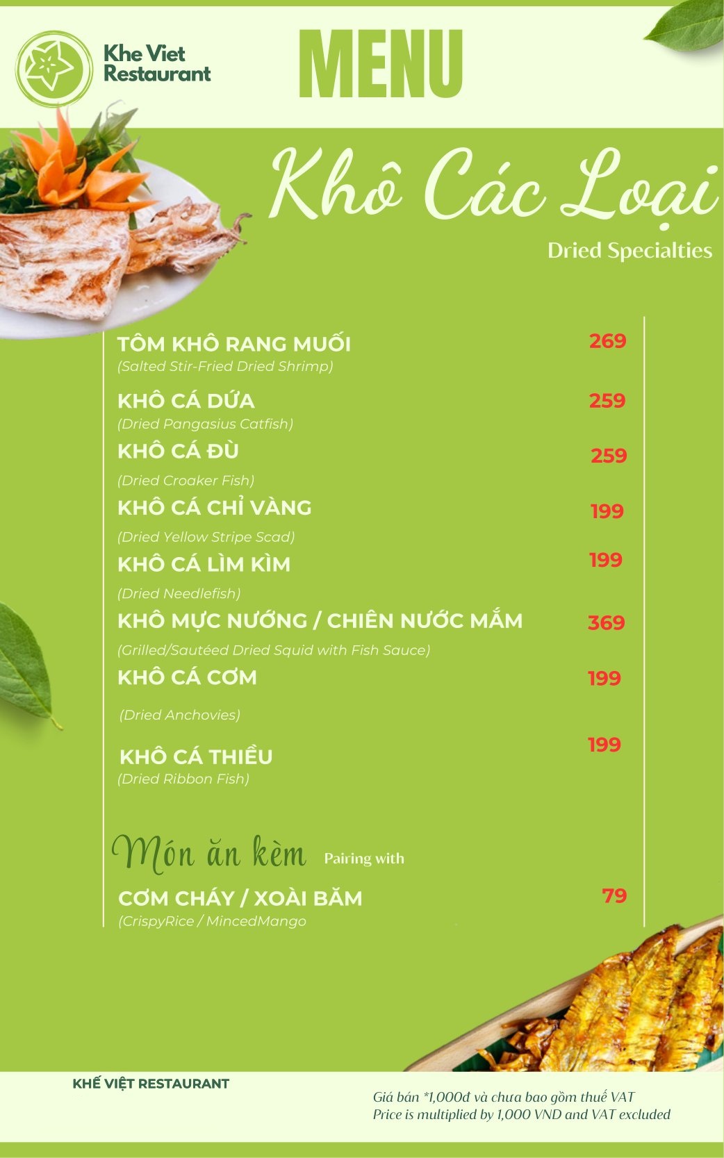 Menu Nhà Hàng Khế Việt Restaurant