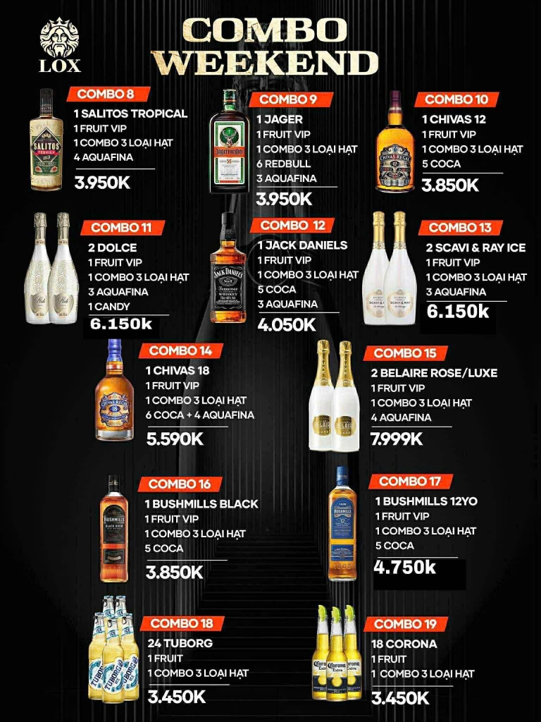 Lox Vũng Tàu phục vụ nhạc EDM, remix, house và hip-hop xuyên suốt đêm, đảm bảo không khí luôn sôi động. Quán còn tổ chức sự kiện định kỳ hàng tuần như Ladies Night với nhiều ưu đãi hấp dẫn dành riêng cho khách nữ.