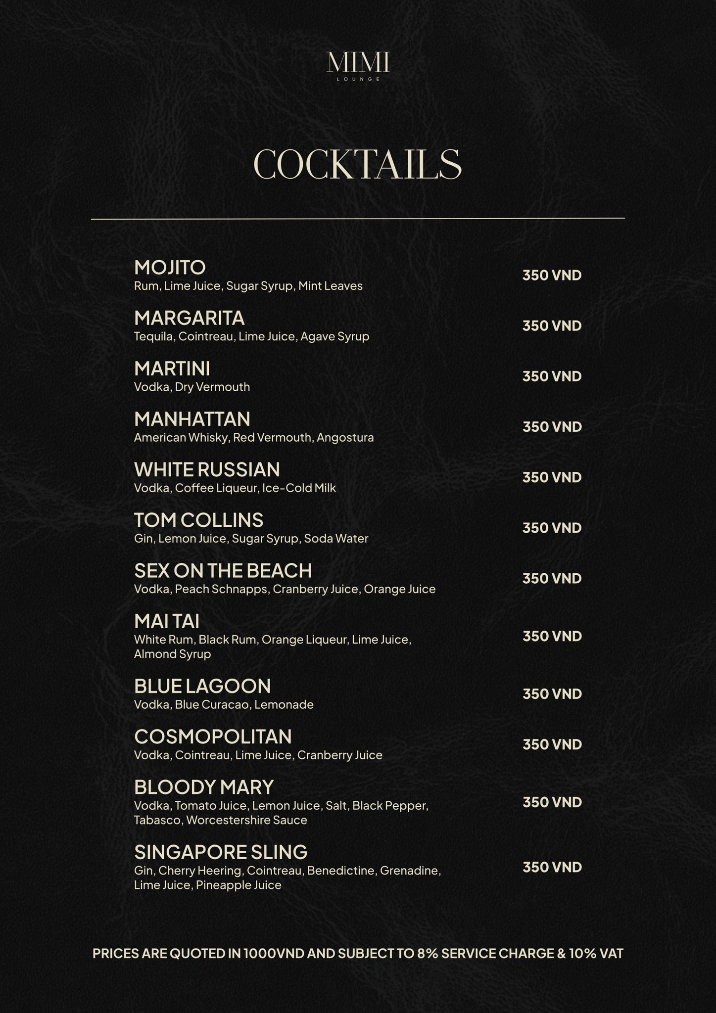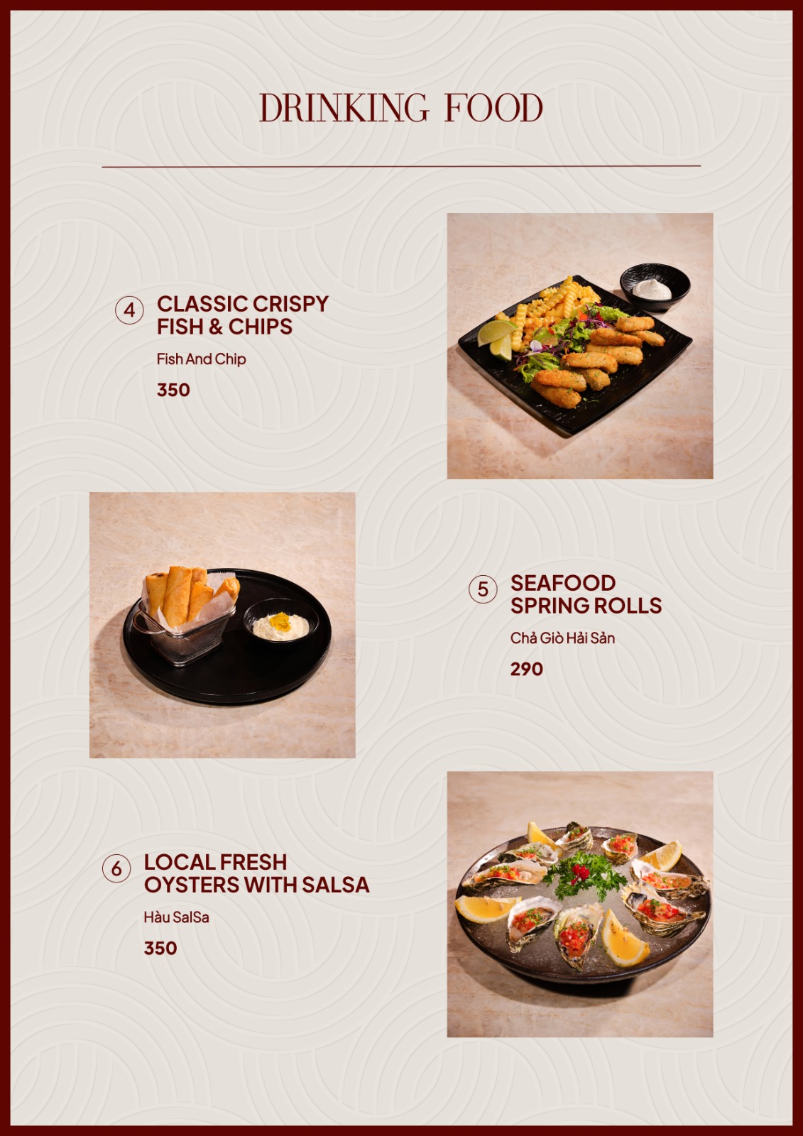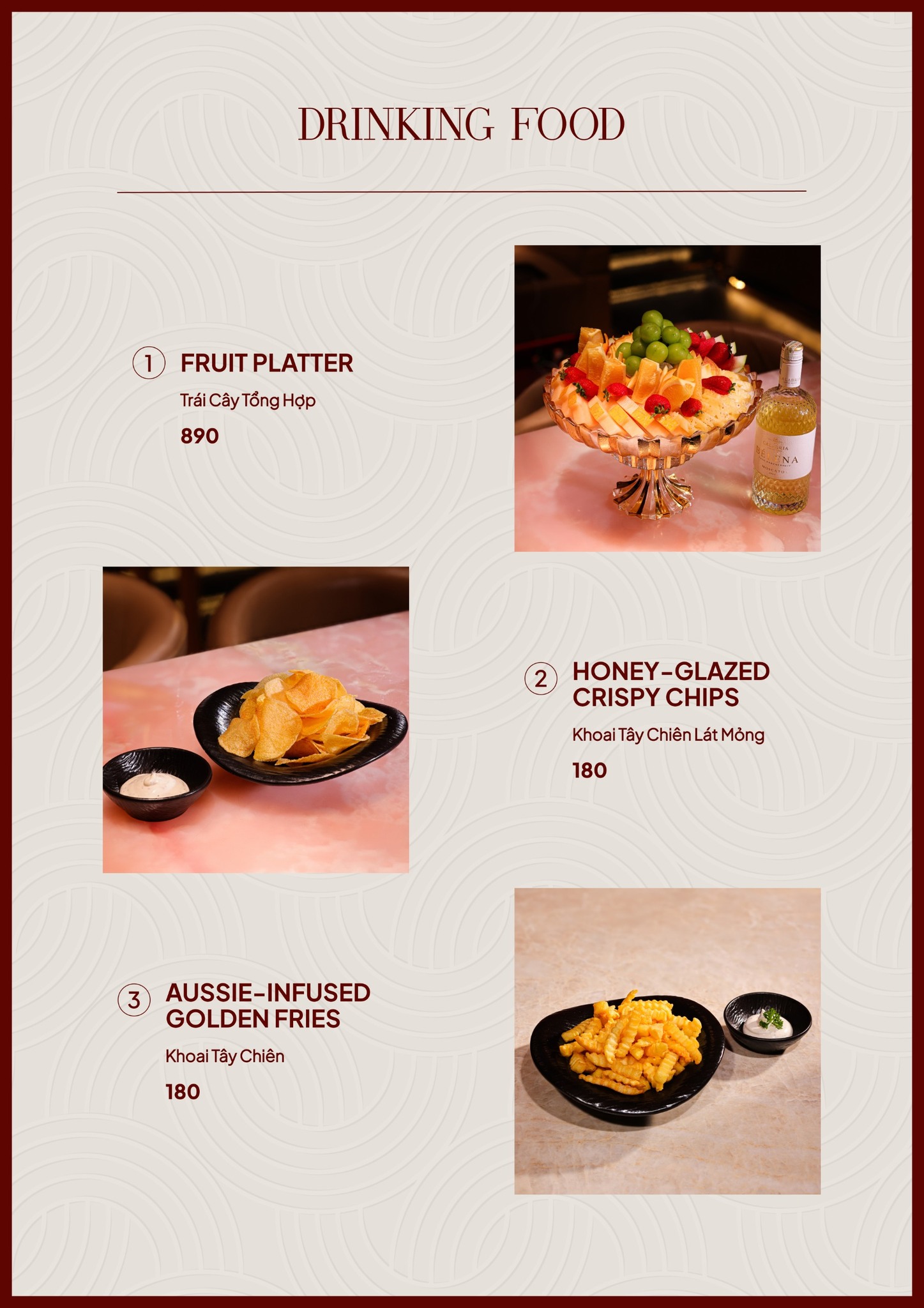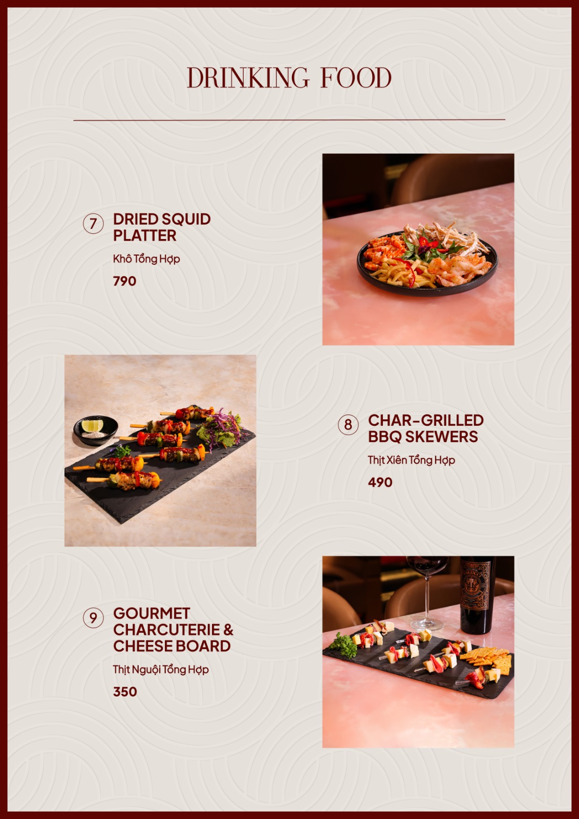 Lounge không chỉ phục vụ âm nhạc mà còn có menu đồ ăn & đồ uống cao cấp: cocktail, wine, light food…