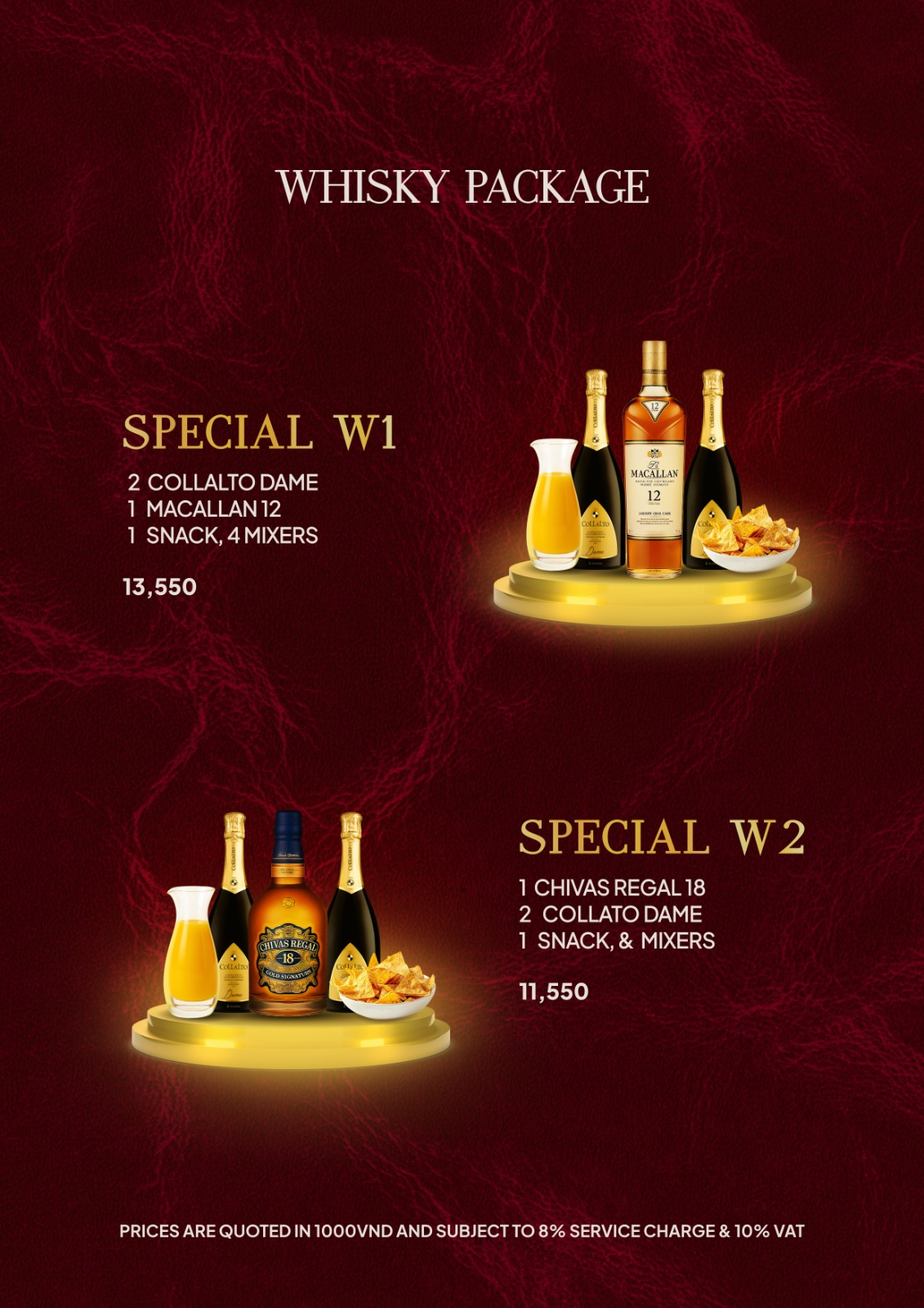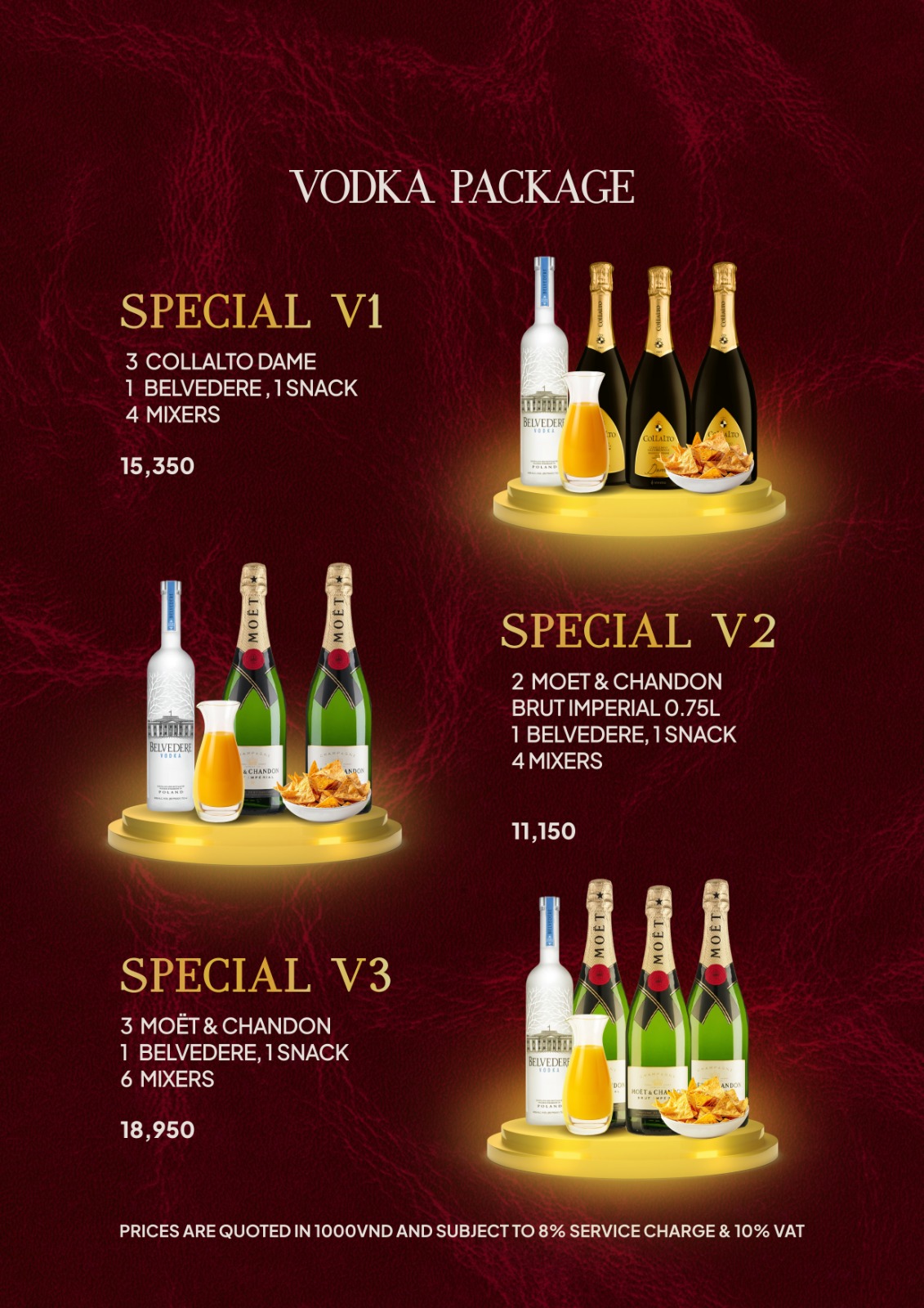 Dịch vụ VIP / bottle service: hỗ trợ đặt bàn VIP, trải nghiệm uống rượu chai cao cấp trong không gian riêng biệt.