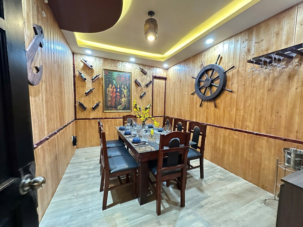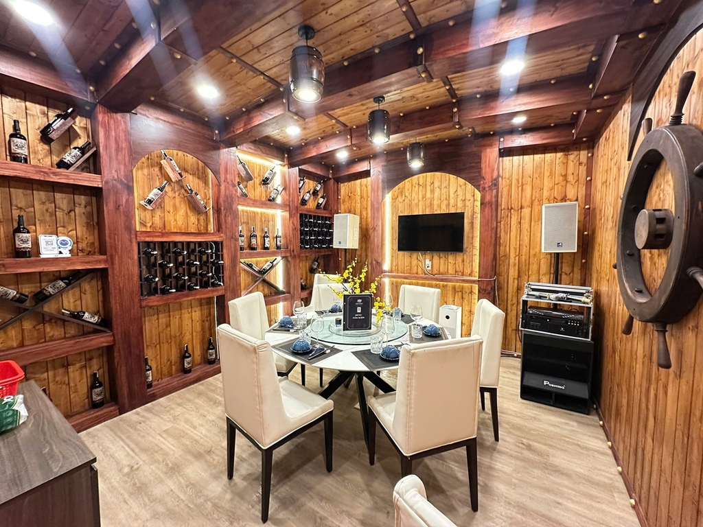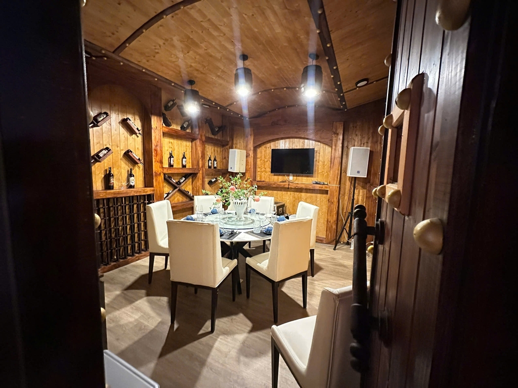 Bước vào Hội Bàn Đào, bạn sẽ ấn tượng với thiết kế hầm rượu kiểu châu Âu cổ điển: tường gạch, trần vòm, ánh đèn vàng nhẹ cùng những kệ rượu được sắp đặt tinh tế. Không gian mang đến cảm giác riêng tư, ấm cúng – hoàn hảo cho những buổi tiệc sang trọng, họp mặt bạn bè hoặc gặp gỡ đối tác.