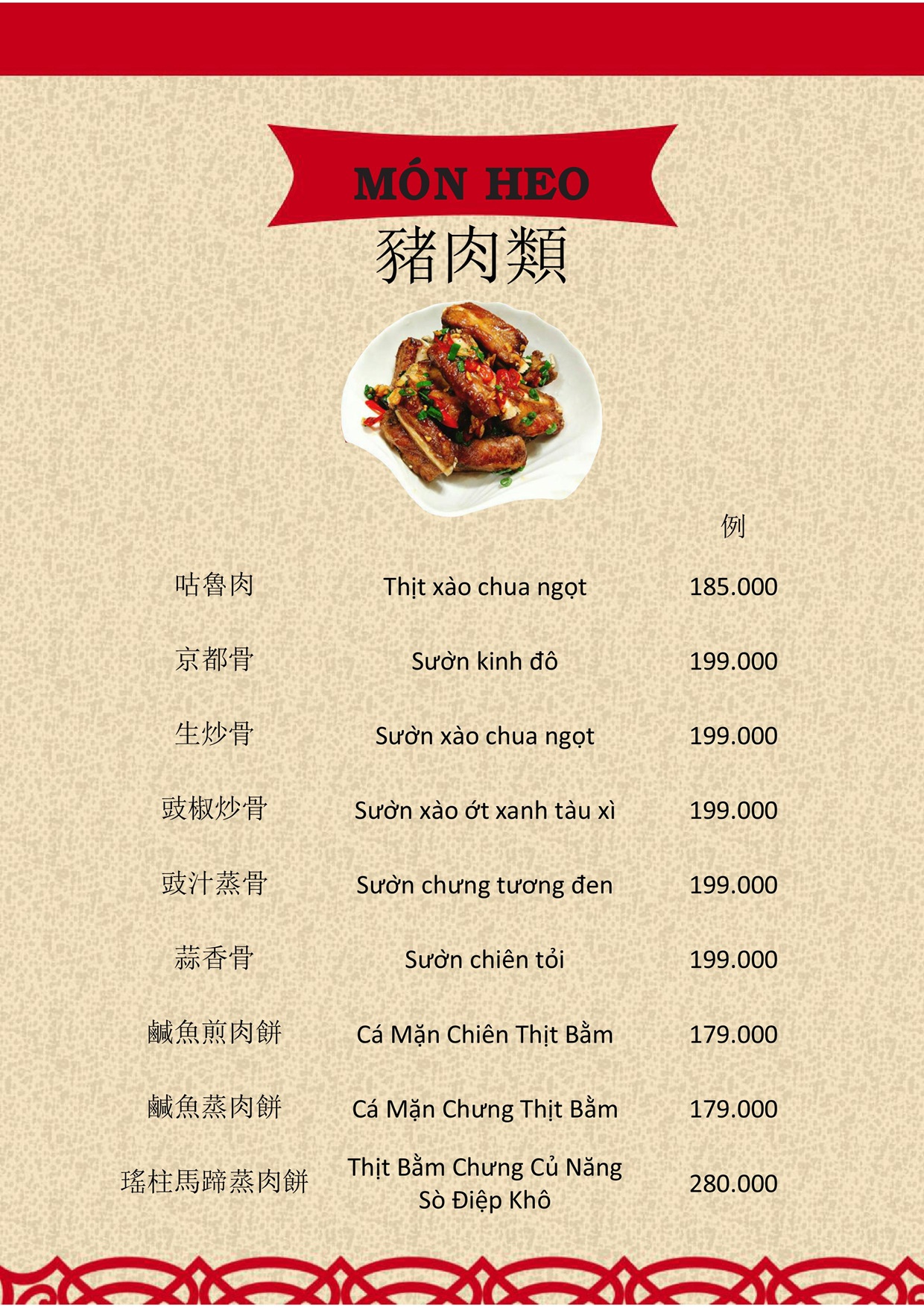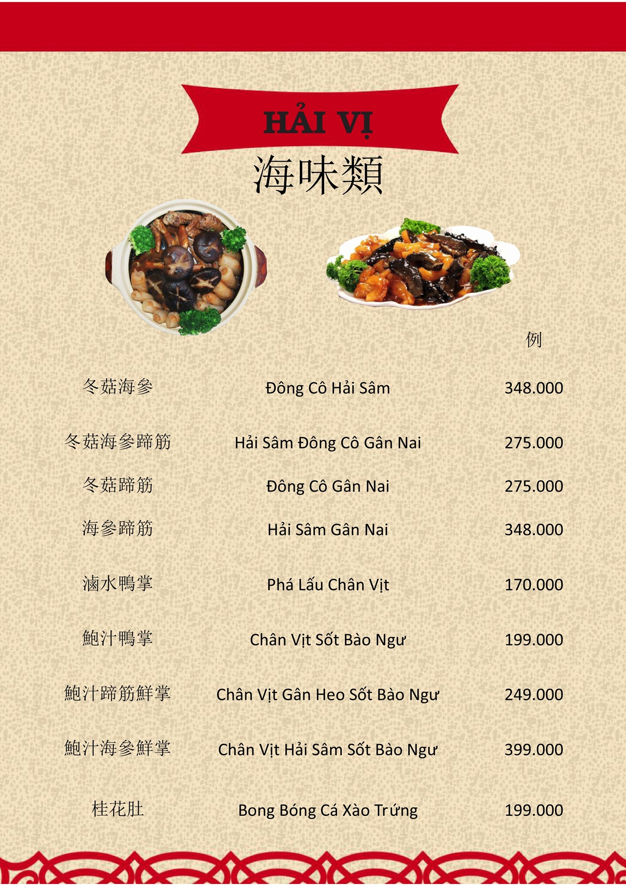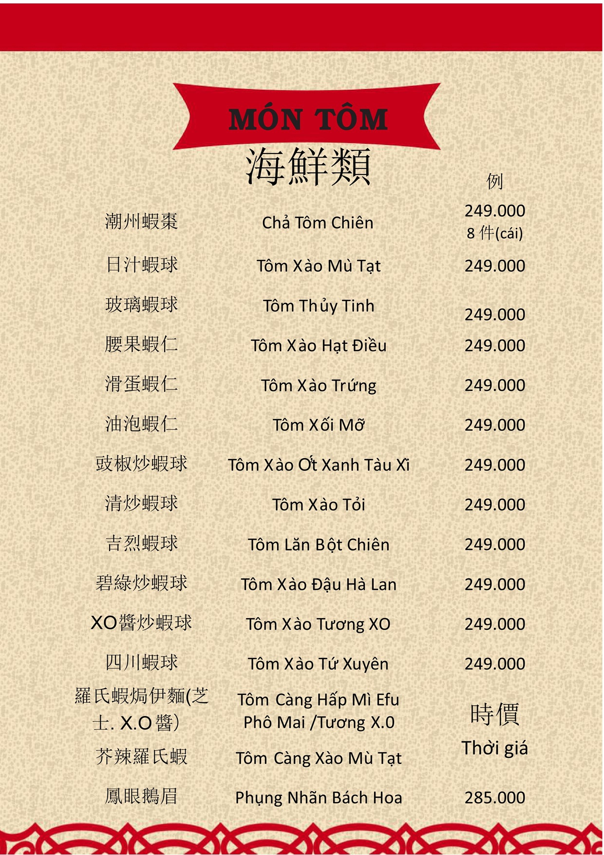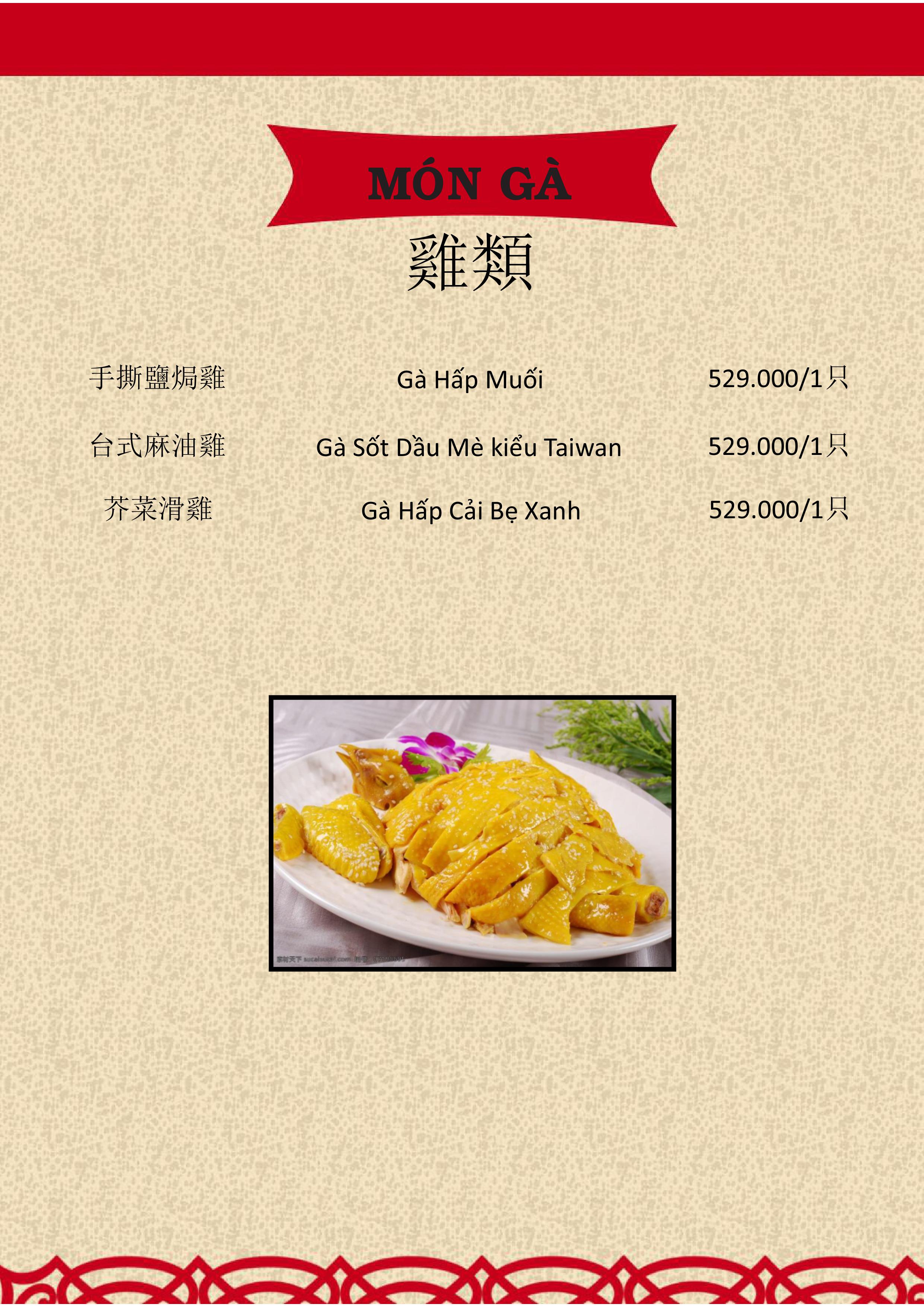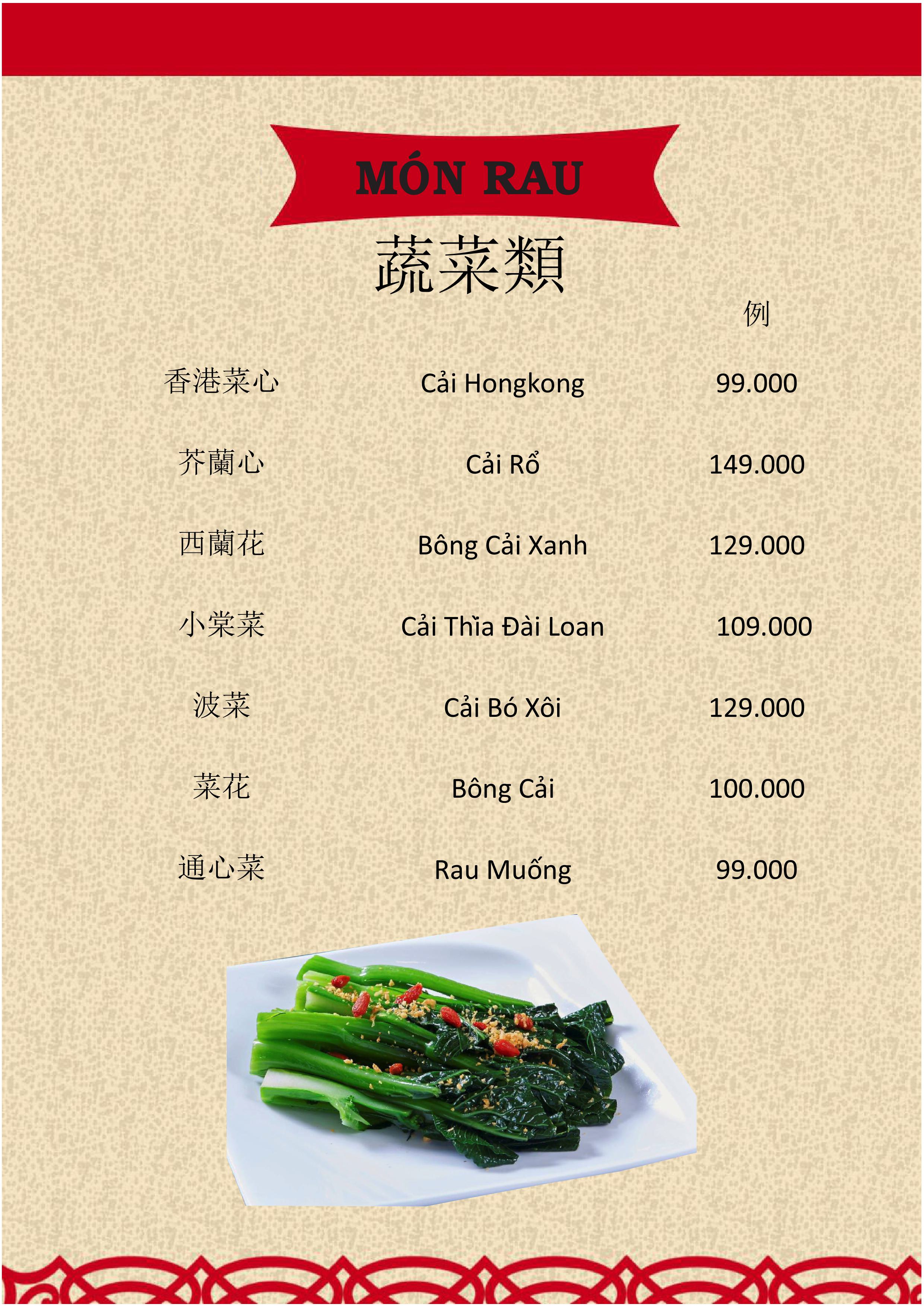 THỰC ĐƠN MENU NHÀ HÀNG HỒNG PHONG