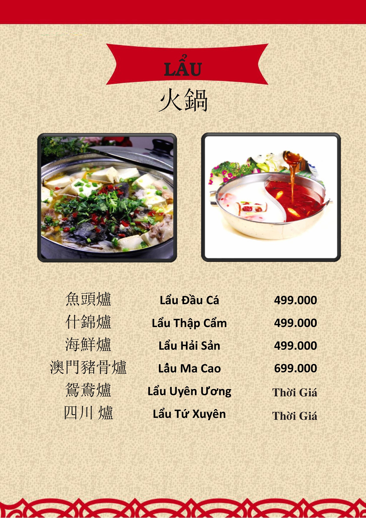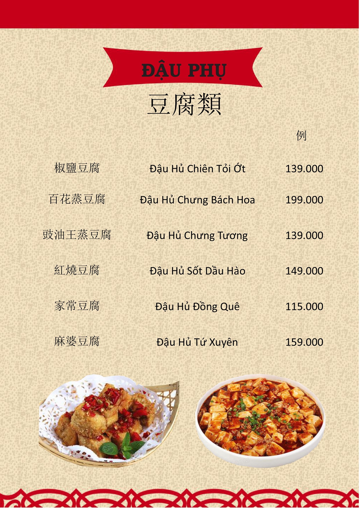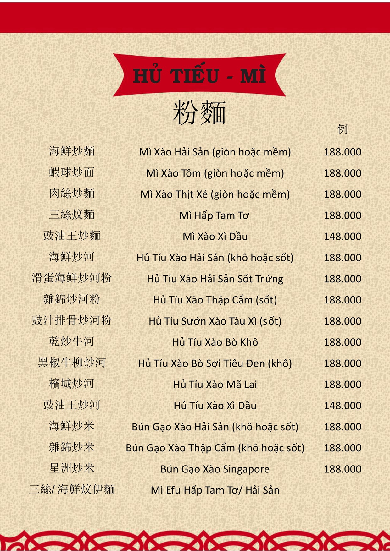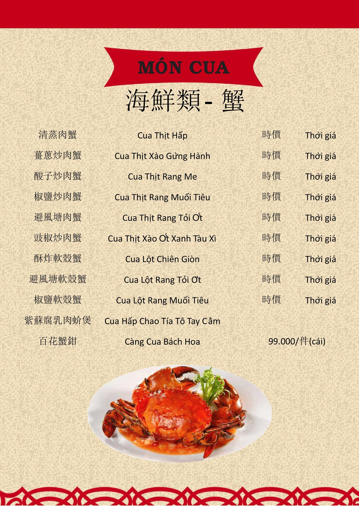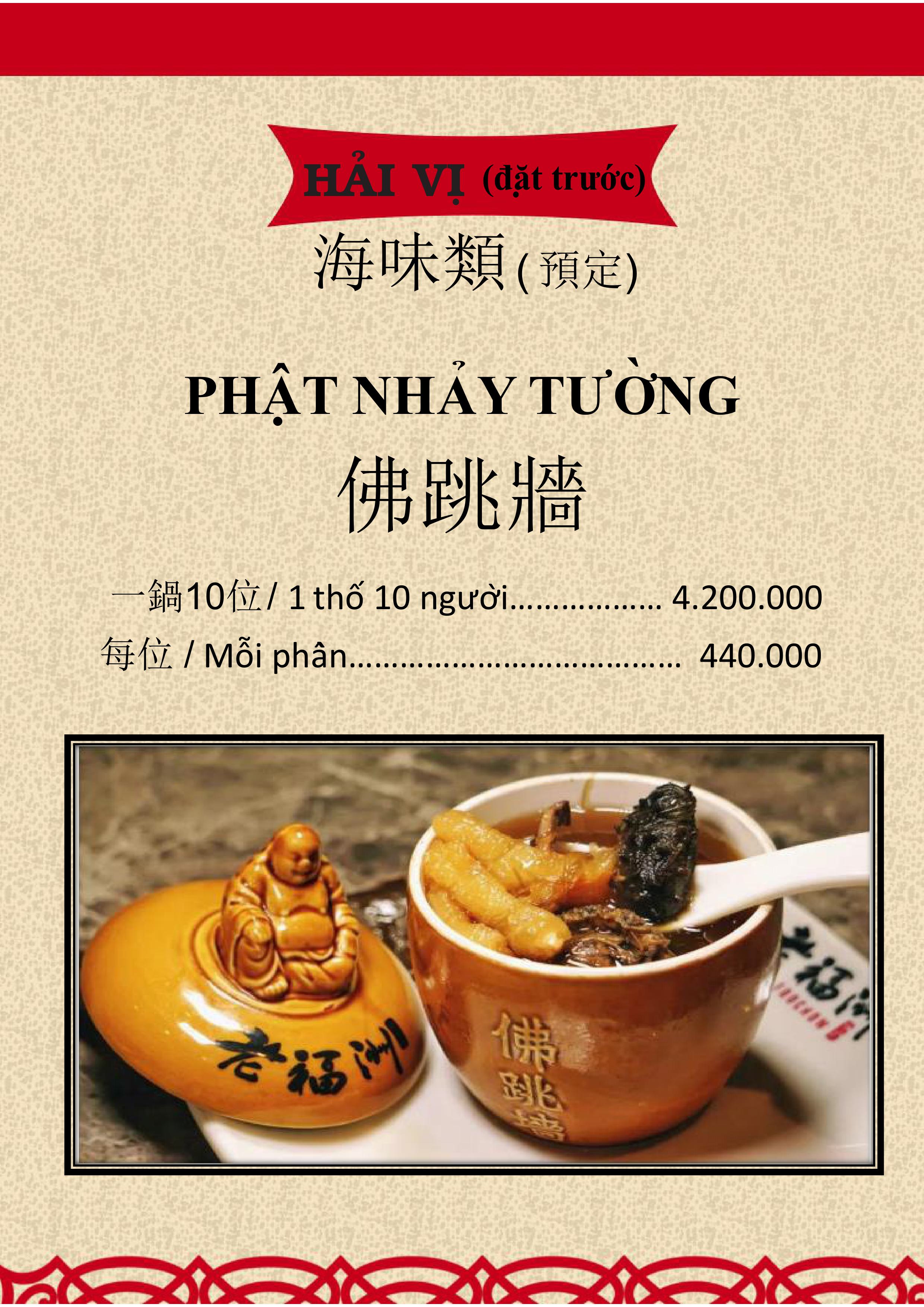 THỰC ĐƠN MENU NHÀ HÀNG HỒNG PHONG