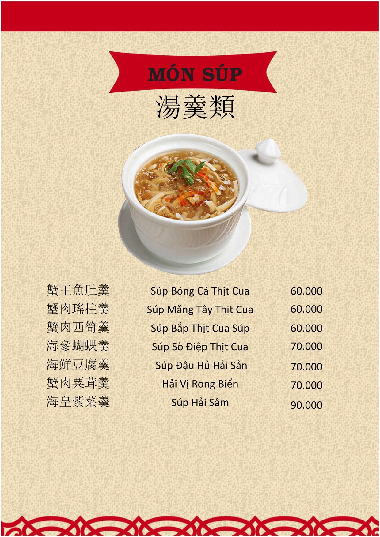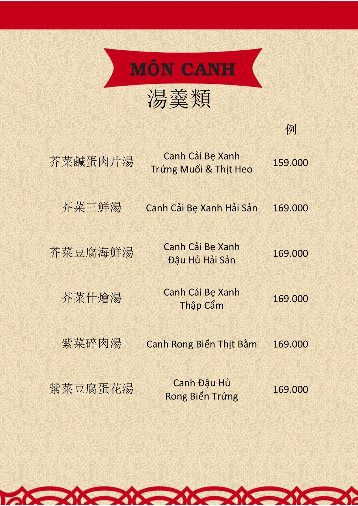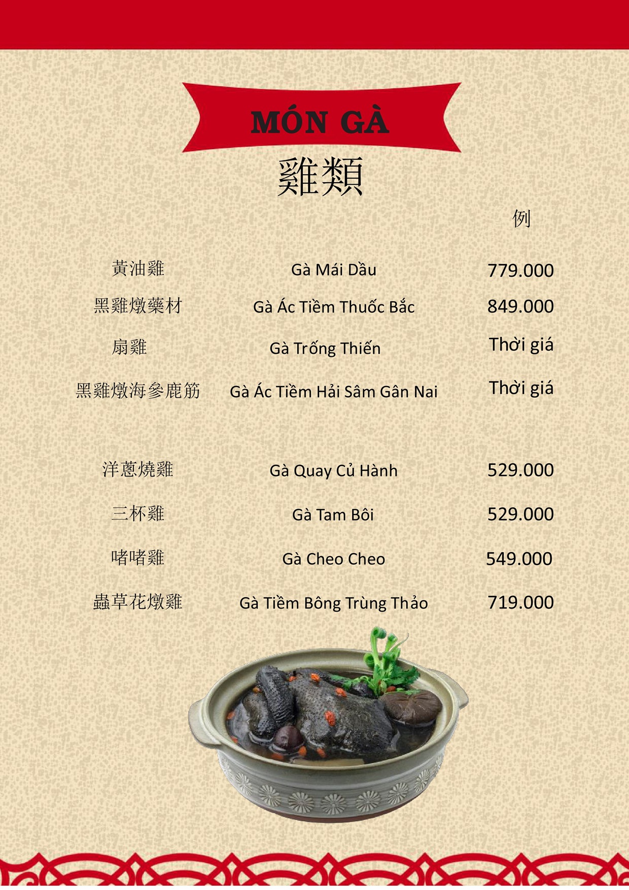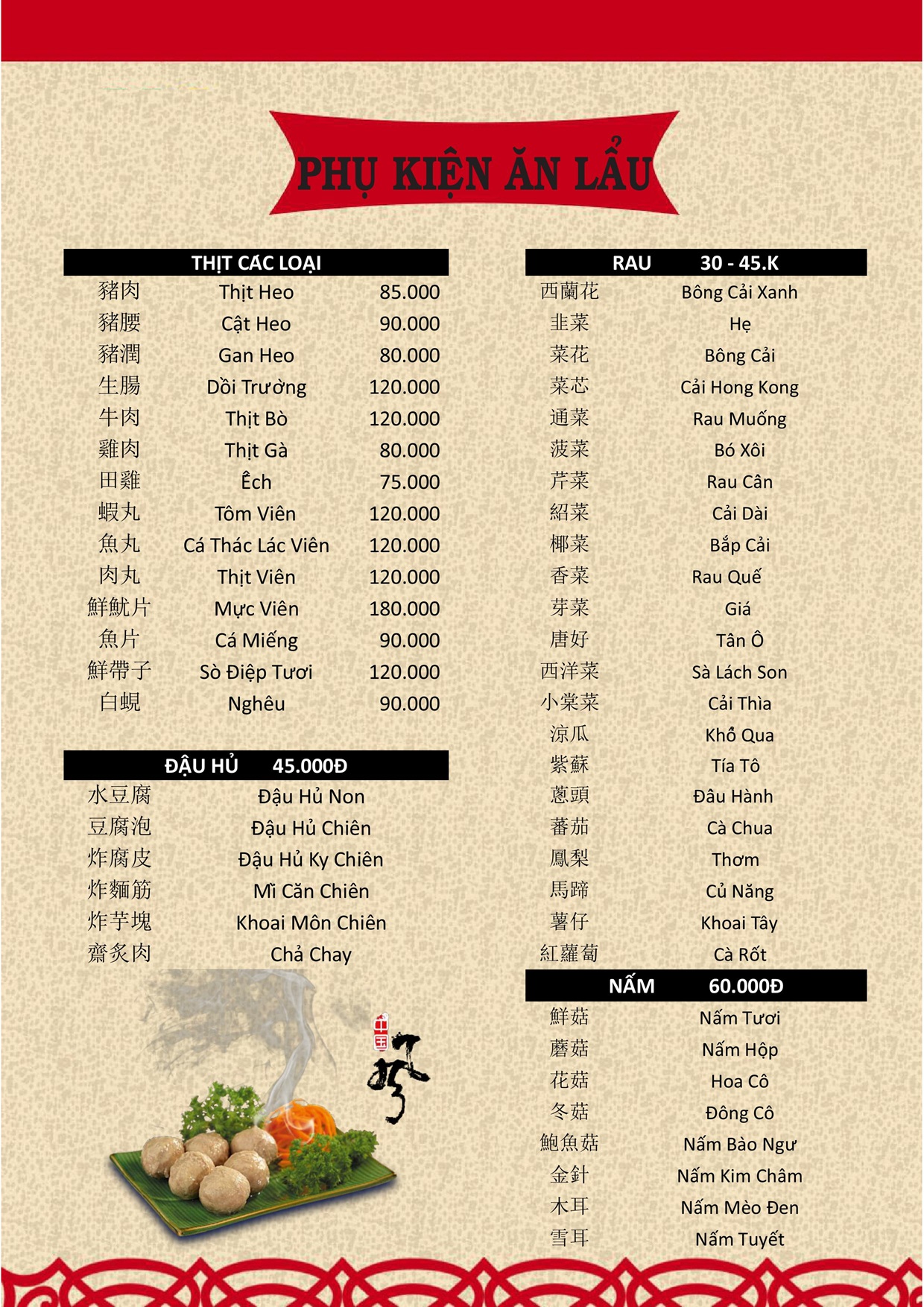 THỰC ĐƠN MENU NHÀ HÀNG HỒNG PHONG