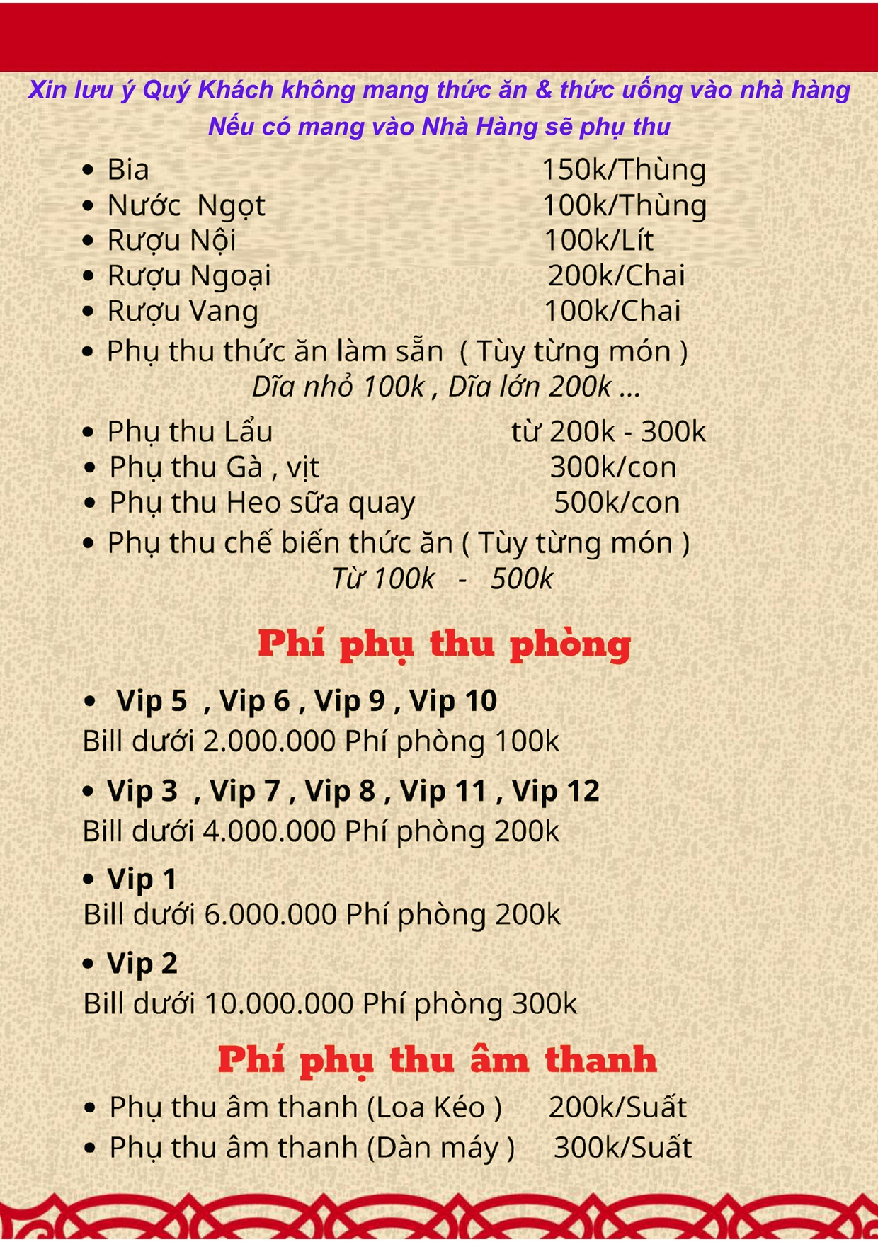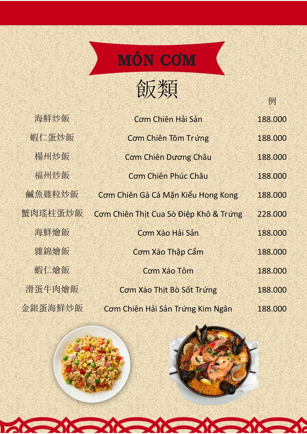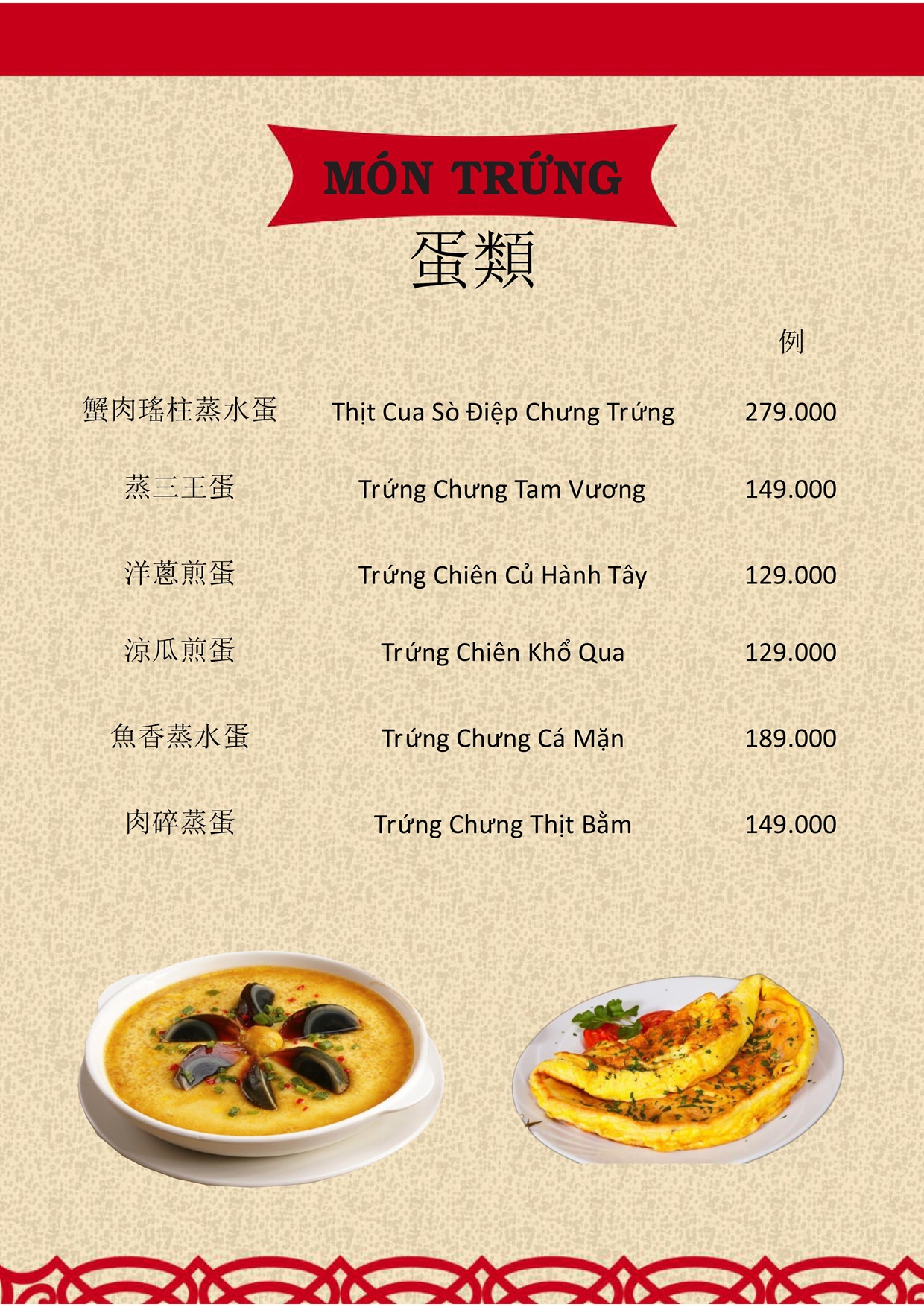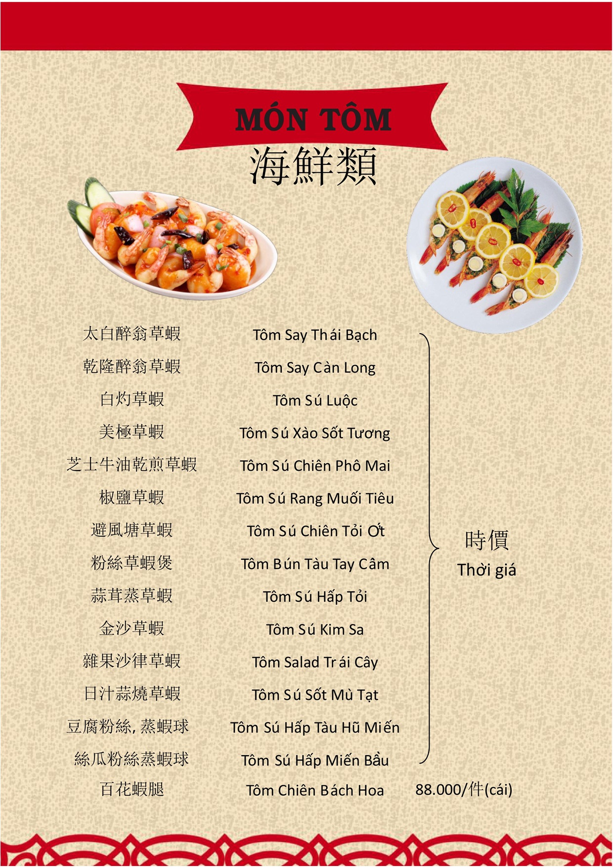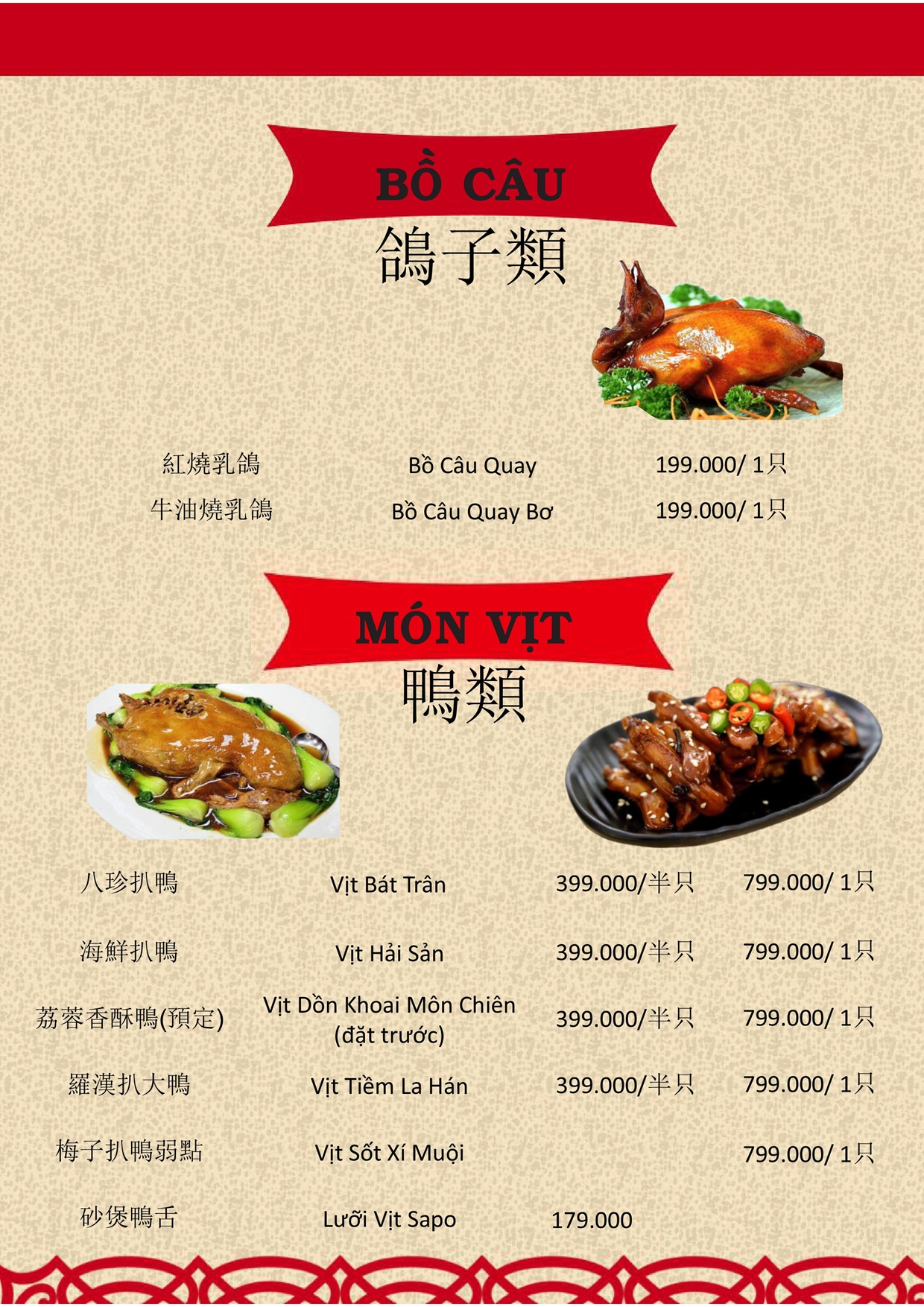THỰC ĐƠN MENU NHÀ HÀNG HỒNG PHONG