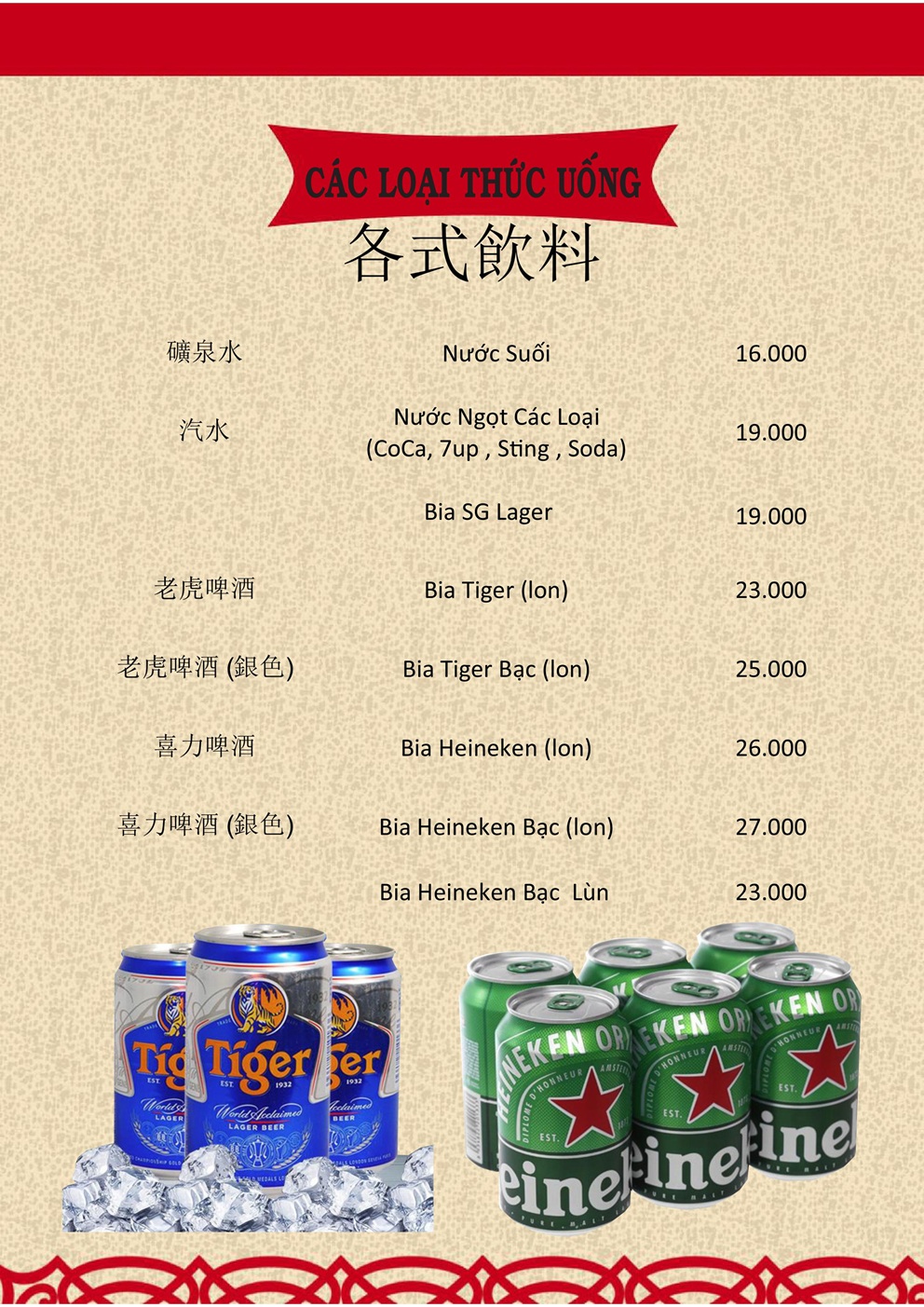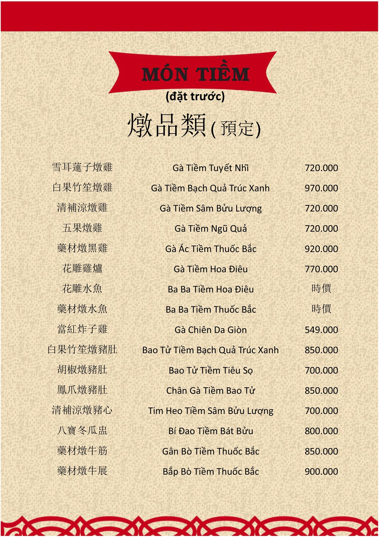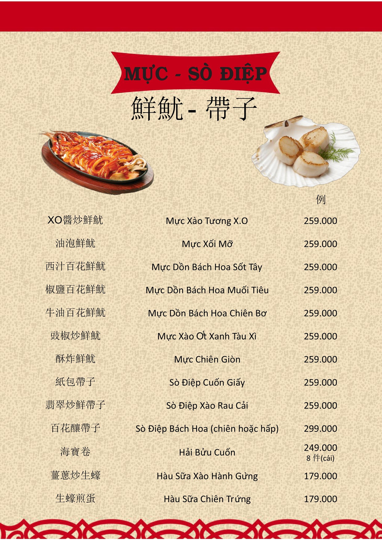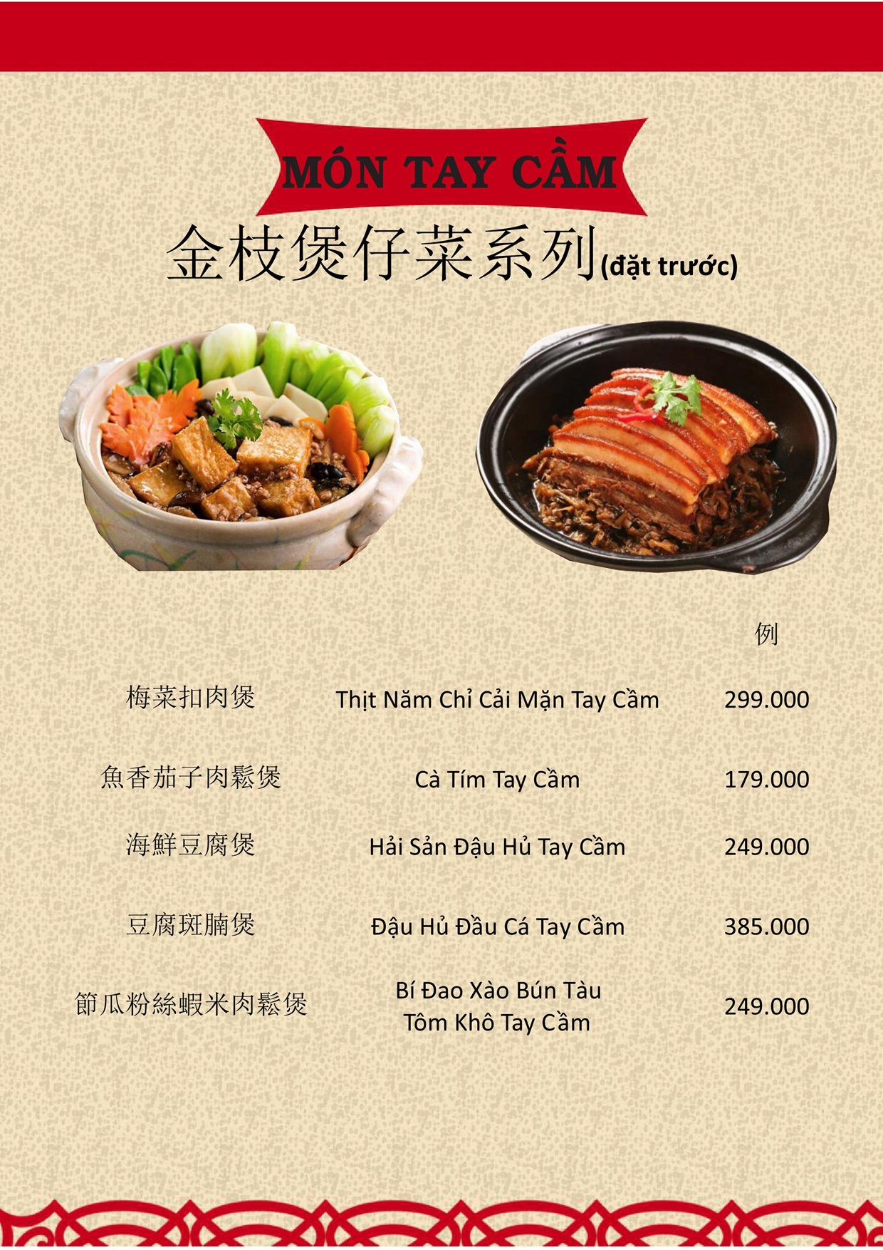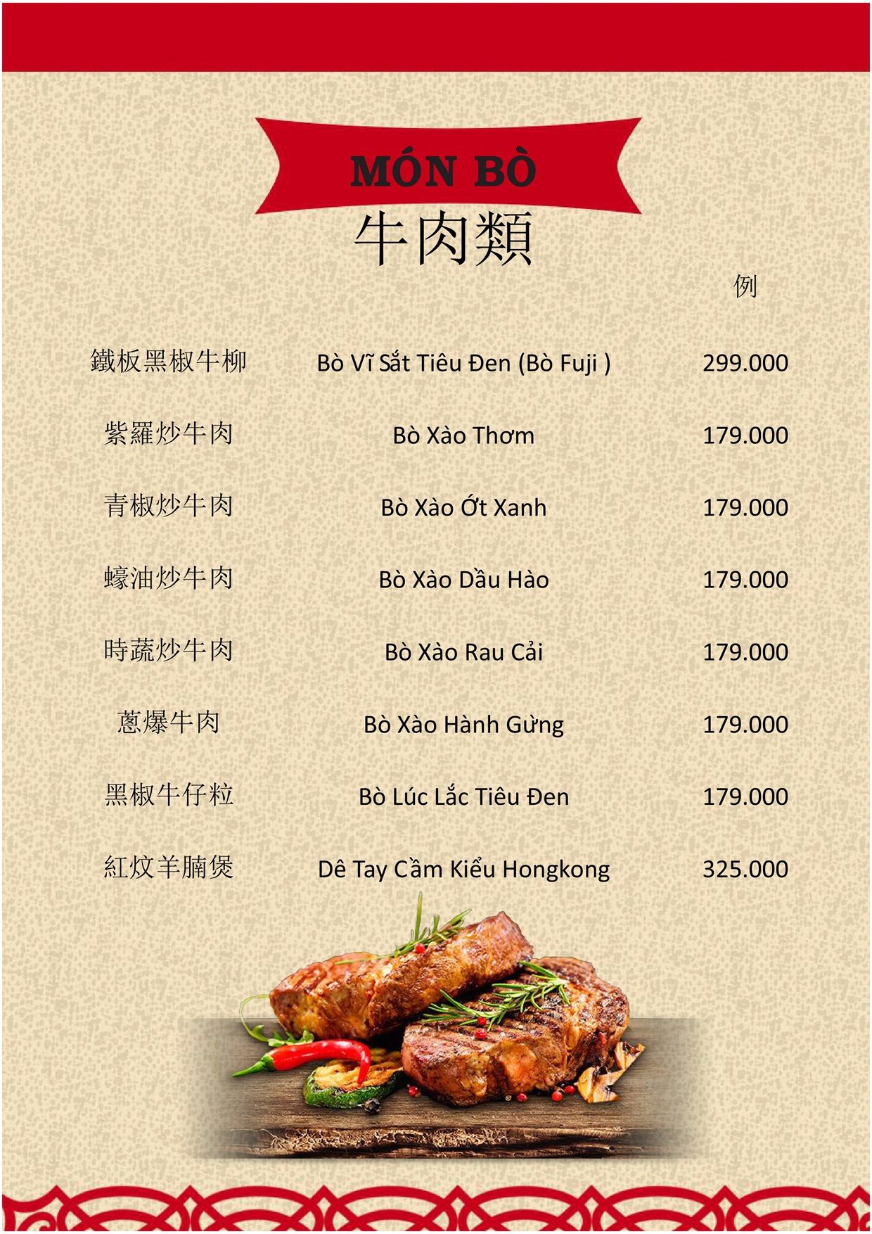 THỰC ĐƠN MENU NHÀ HÀNG HỒNG PHONG