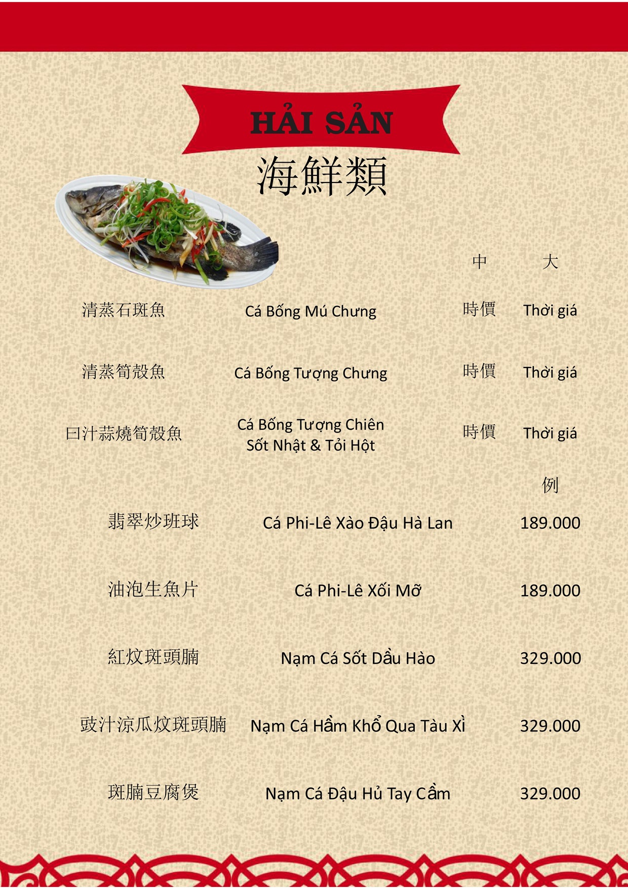 Phong cách: Nhà hàng Trung Hoa, Món Việt & Hải sản cao cấp