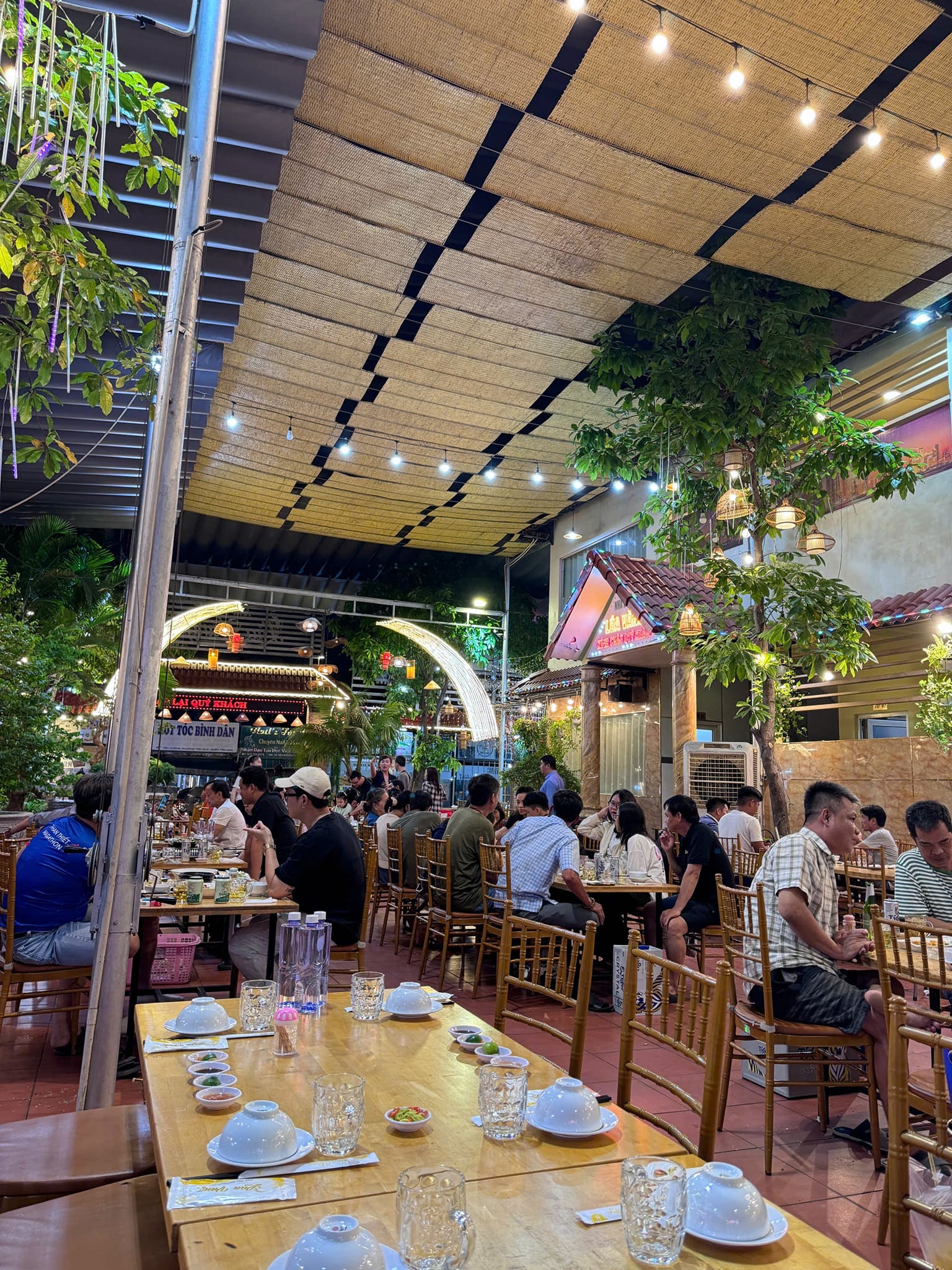 Không gian sân vườn rộng rãi, thoáng mát ,thoải mái khi ăn uống