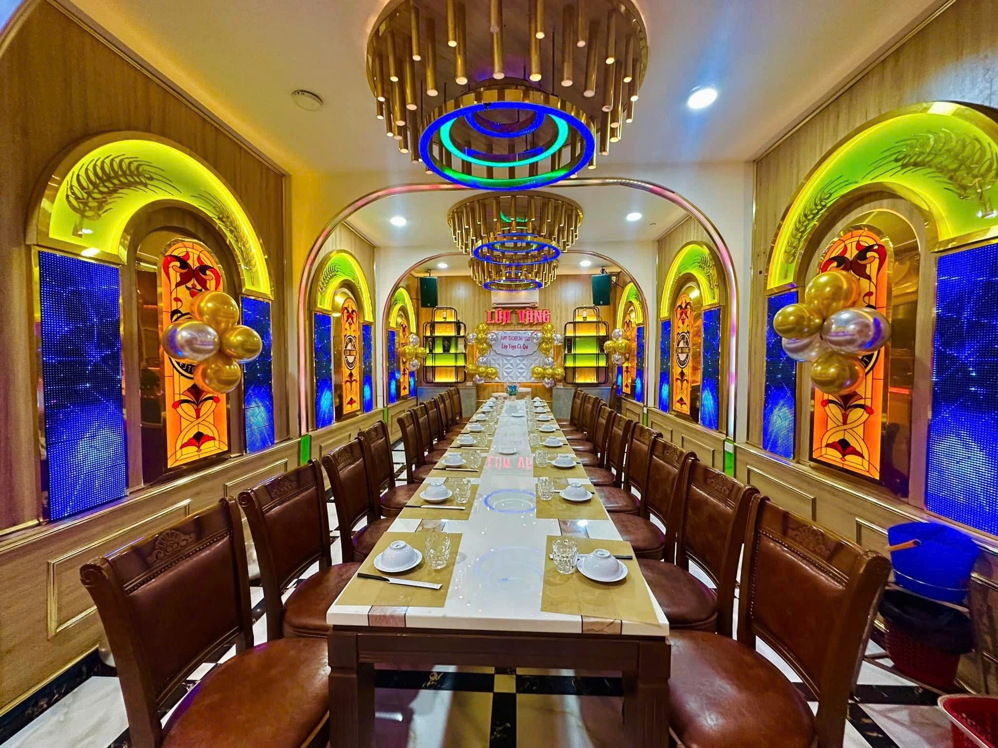 Nhà hàng Lúa Vàng cung cấp nhiều món ăn đa dạng, phục vụ cho nhiều khẩu vị từ ba miền và hải sản tươi sống. Không gian của nhà hàng mang phong cách đồng quê, yên tĩnh và thoáng mát. Ngoài ra, nhà hàng còn có các chương trình ưu đãi cho khách đặt tiệc. Để biết thêm thông tin chi tiết, bạn có thể liên hệ qua Hotline 0902 599 724 để đặt bàn nhé !