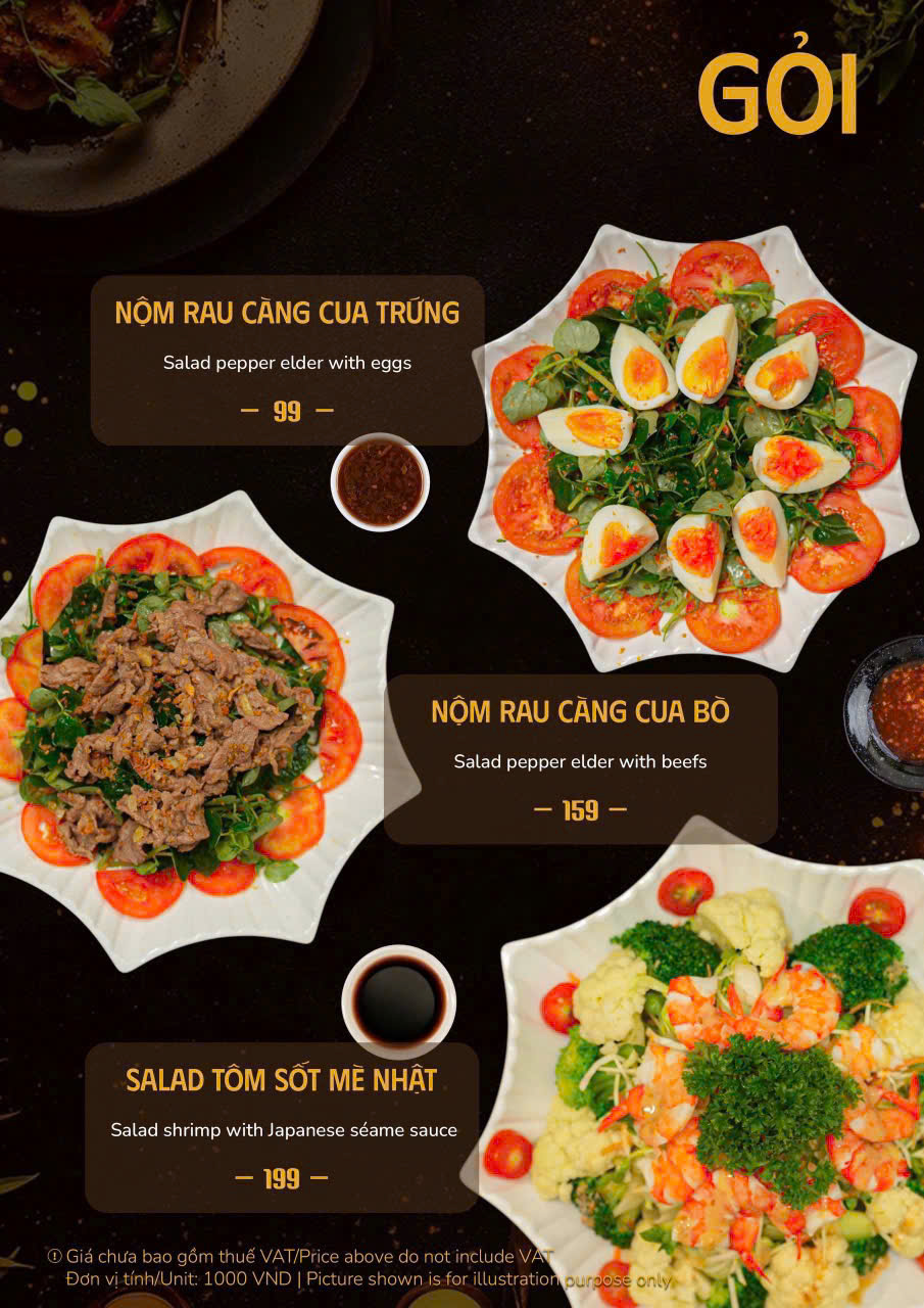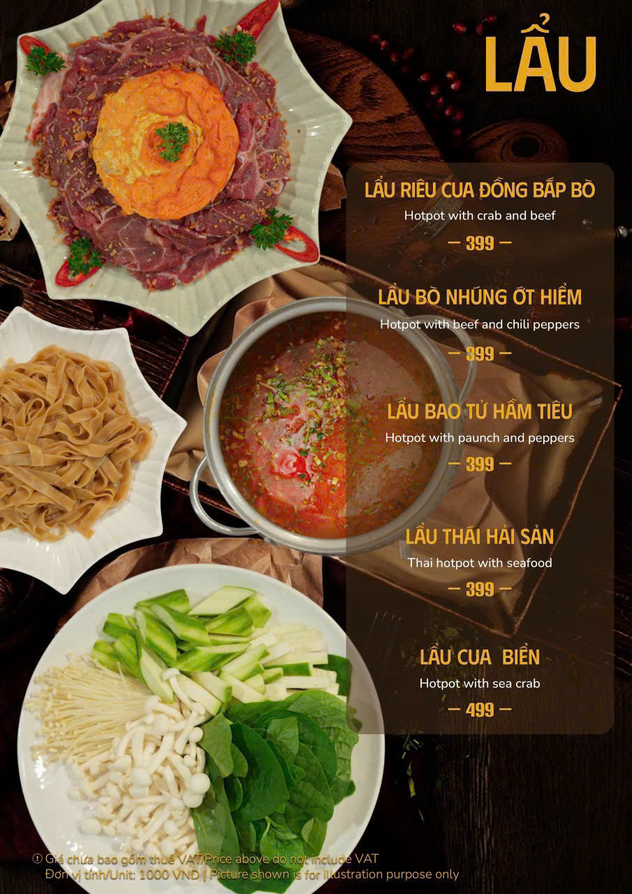 Các món nướng và lẩu đặc sắc: bò Mỹ nướng, lẩu hải sản chua cay
