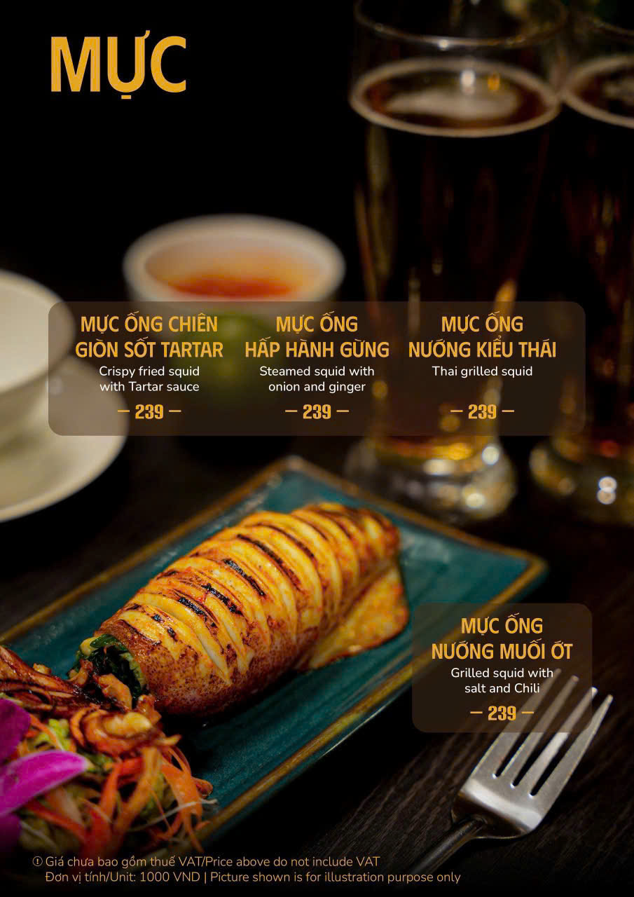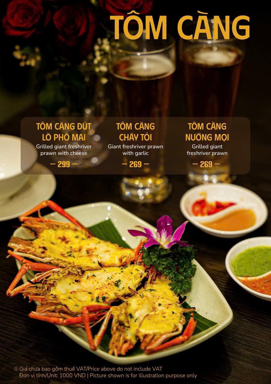 Hải sản tươi sống: tôm hùm, hàu nướng, mực hấp bia