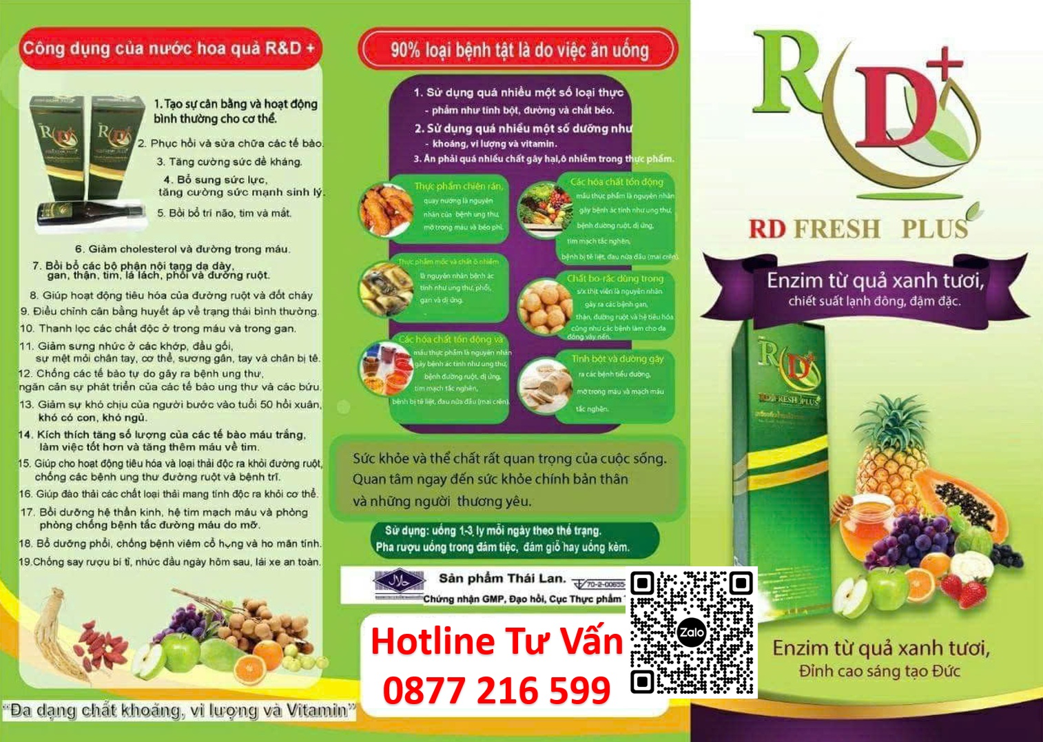 RD Fresh Plus là sản phẩm nước hoa quả enzyme tươi từ Thái Lan, được chiết xuất từ hơn 15 loại trái cây và thảo mộc quý.
