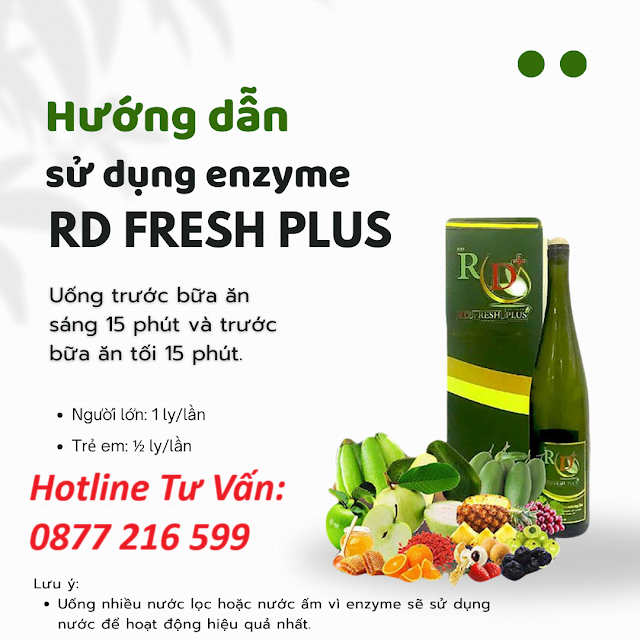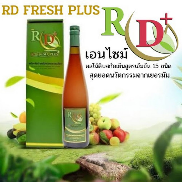 RD Fresh Plus là sản phẩm nước hoa quả enzyme xuất xứ từ Thái Lan, được sản xuất theo công nghệ enzyme của Đức. Sản phẩm được chiết xuất từ hơn 15 loại trái cây và thảo mộc tươi, không chứa đường, chất hóa học hay chất bảo quản.