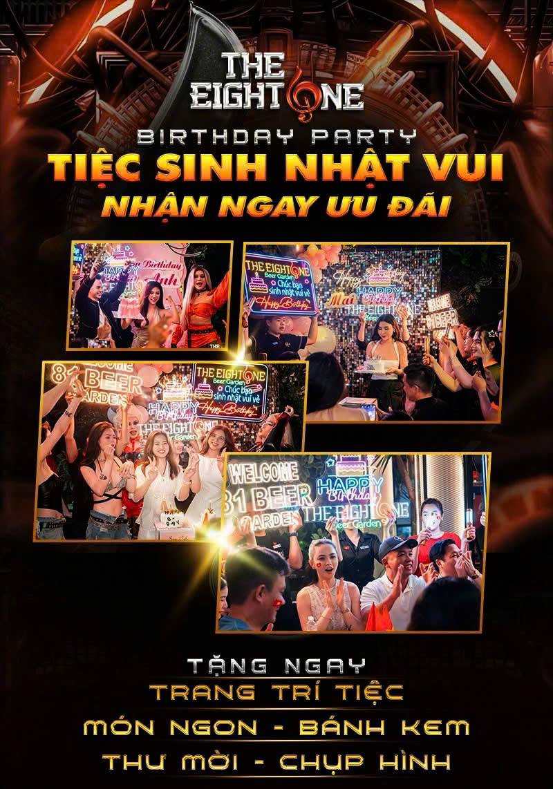 🍻 The Eight One Beer Club là beer club phong cách trẻ trung, nổi bật với không gian hiện đại, âm thanh ánh sáng sống động và thực đơn đa dạng – nơi lý tưởng để họp mặt bạn bè, tổ chức sinh nhật, liên hoan công ty hay đơn giản là quẩy bung nóc mỗi tối !