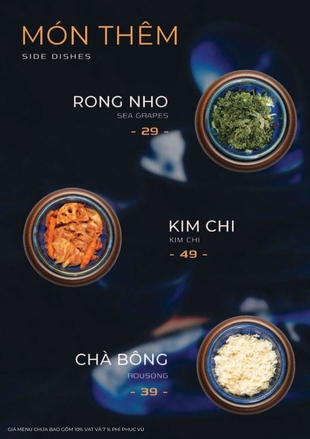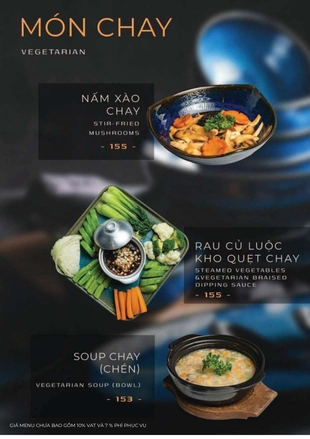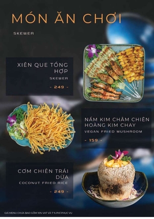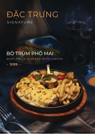 Tất cả nguyên liệu đều được chọn lọc tươi mới mỗi ngày, chế biến bởi đầu bếp giàu kinh nghiệm, đảm bảo hương vị hấp dẫn và an toàn thực phẩm.