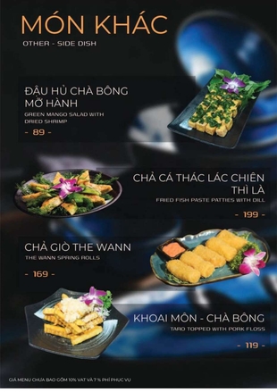 Thực đơn tại The Wann kết hợp tinh hoa ẩm thực Á – Âu với các món ăn đặc trưng: