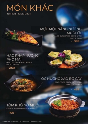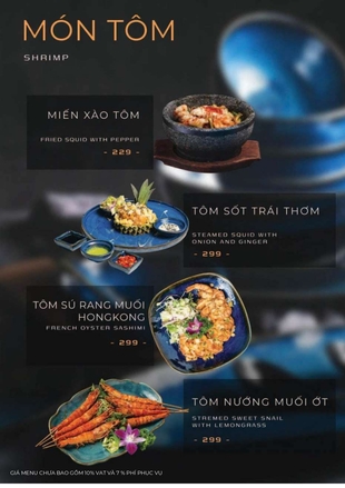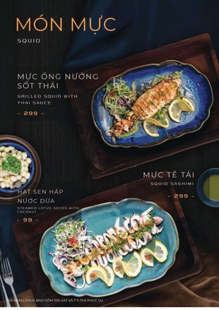 Combo 2: Mực nướng sốt Thái, Ốc hương sốt trứng muối, Cá tầm muối ớt…